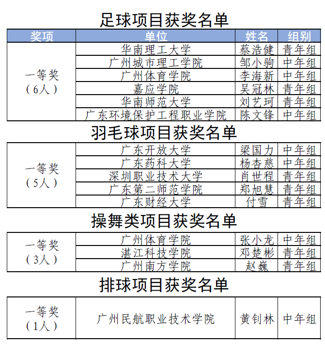 华南师范大学青年教师刘艺珂、马琳分别获得足球项目一等奖以及操舞类项目二等奖。