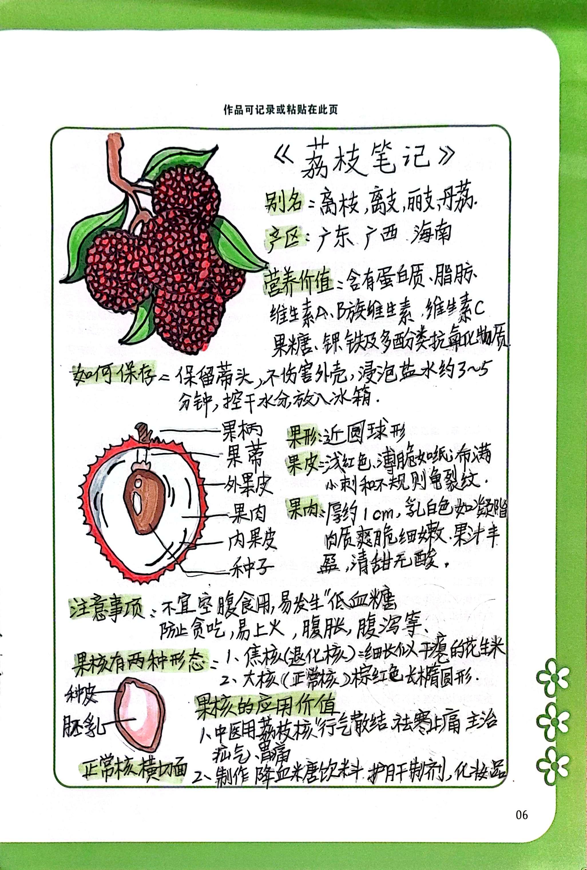 第二项任务是用画笔为荔枝、芒果等水果绘制“解剖图”,形成自然观察笔记。