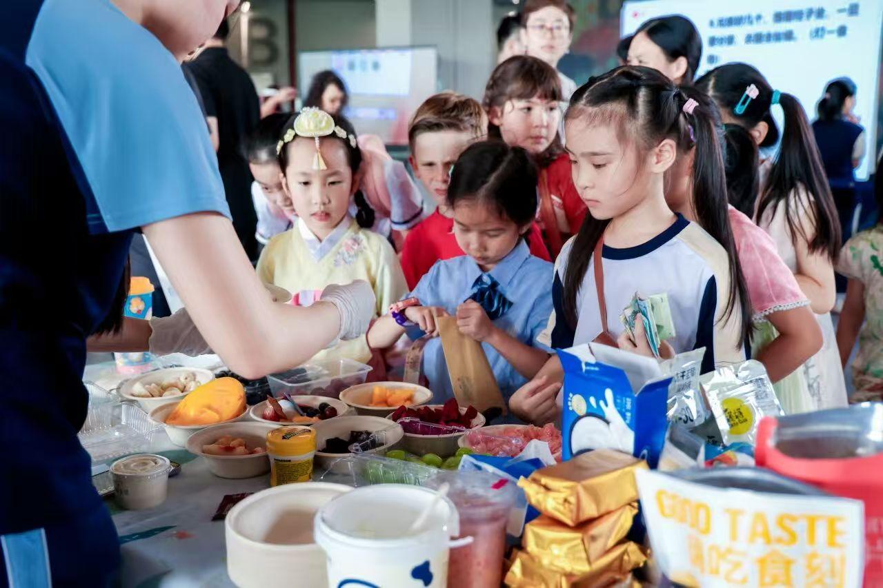 今年游园会更因公益而温暖。部分商家展位将20%的收益捐入“爱莎公益基金”,用于“西部助学计划”,支持欠发达地区孩子的教育。家长和孩子在义卖展位挑选文创纪念品的同时,聆听学生大使讲解善款流向。每一份购买,不只是物品,更是一份公益与温暖的传递。