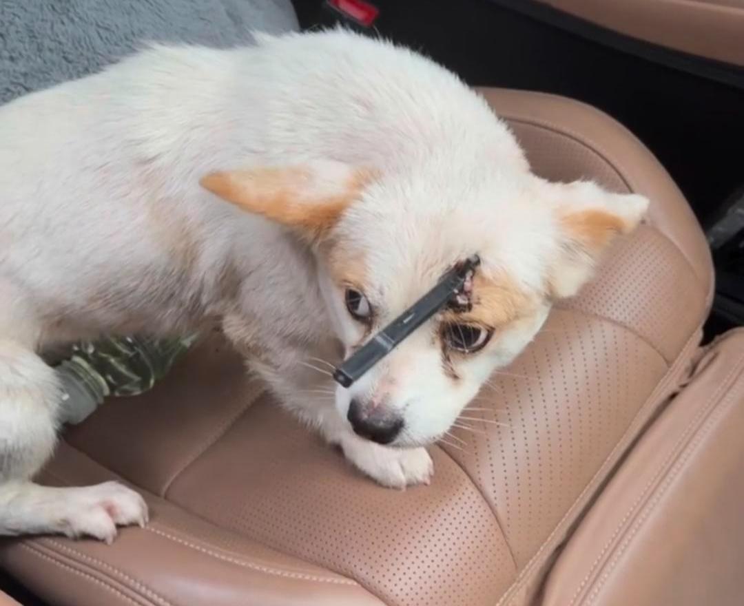 店铺的视频显示,这只受伤的小狗额头前方、左眼上部被插入一只疑似弓箭的异物,经过店方初步检查,这只疑似弓箭深度贯穿小狗的整个脑袋,经过手术之后已经取出,取出的疑似弓箭还带着倒刺。“目前手术很顺利,我们给小狗取名白雪。”