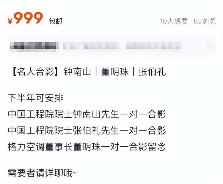 记者以买家身份咨询了一家名为“北京某影视文化传媒”的商家。对方表示,可以安排与钟南山、张伯礼等中国工程院院士合影,价格在2万至3万元不等。另一商家则报价3万元起步,并称“有时会有特价名额,具体价格视活动而定”。