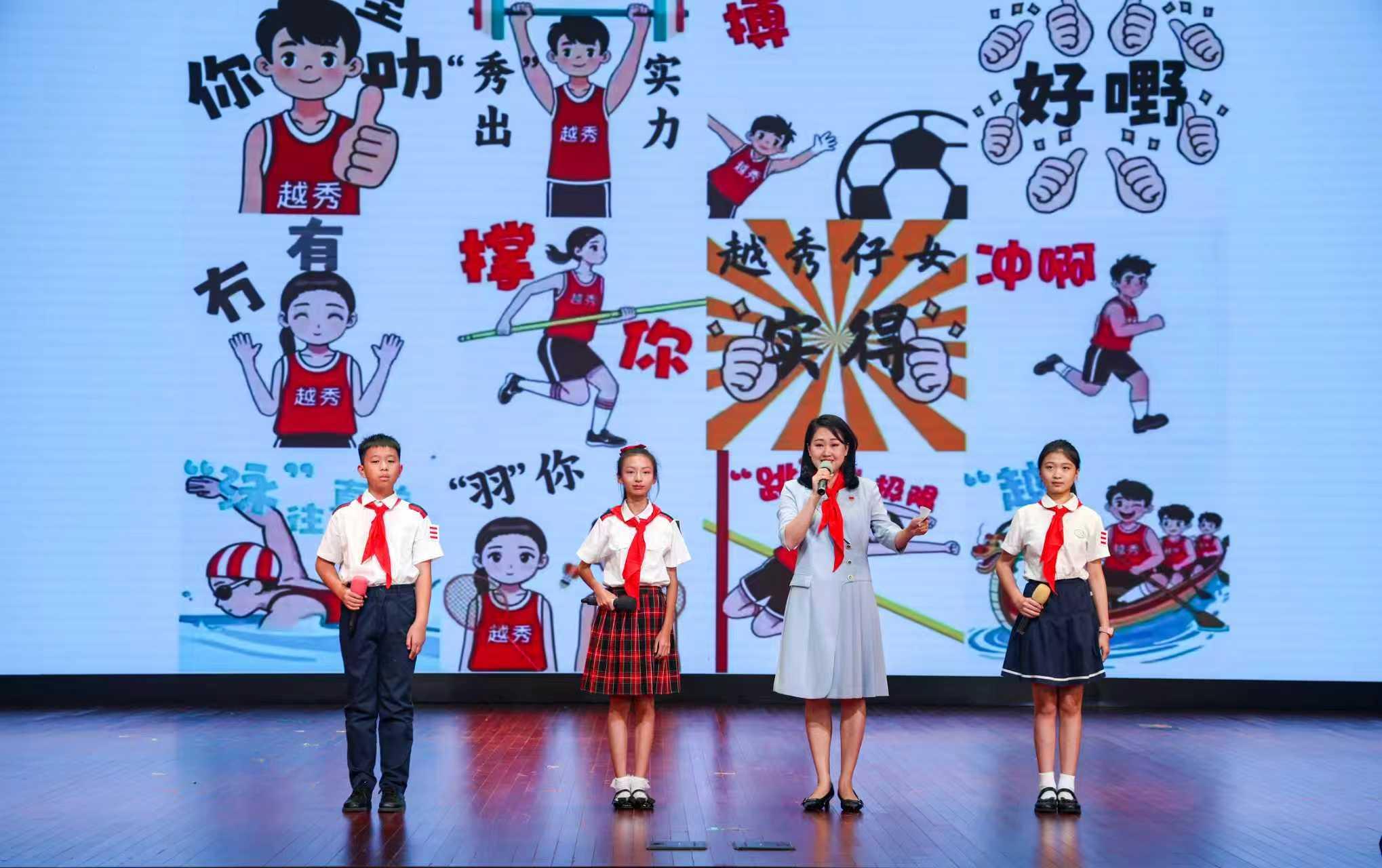 活动尾声,全体少先队员肃立握拳,齐声宣誓:“强国复兴有我,争当新时代好少年!”铿锵誓言在剧场回响,汇聚成越秀少年面向未来的坚定力量。