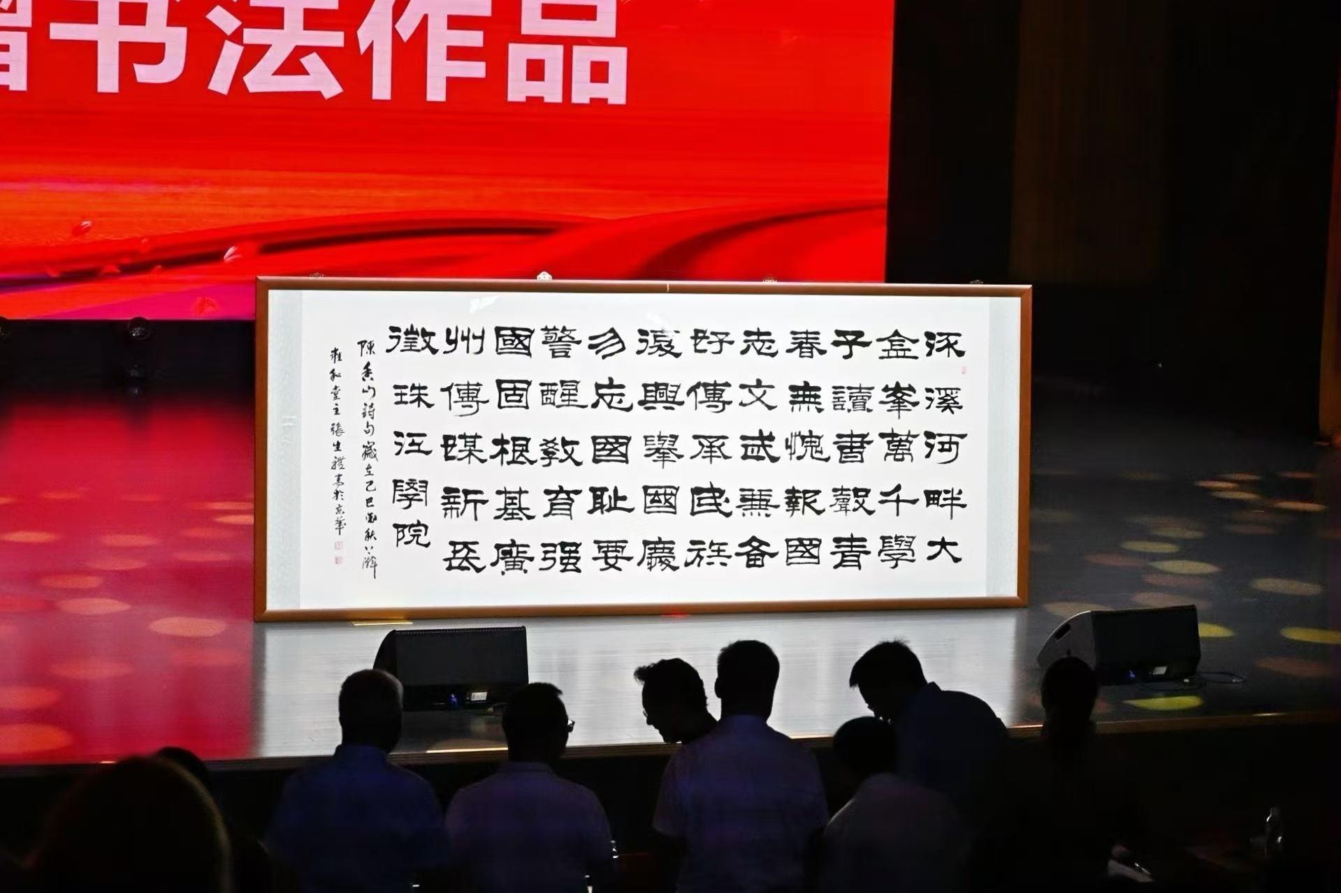 艺术家笔会现场墨香涌动。张生礼等书法名家挥毫泼墨,“铁血丹心”“山河永固”等作品力透纸背,引得师生驻足赞叹,直观感受中华书法文化的千年传承。随后的捐书环节中,军事历史、民族艺术主题书籍被纳入华珠“红色文库”,将展览的视觉叙事延伸至学术研究与课程教学,为师生提供涵养家国情怀的精神食粮。