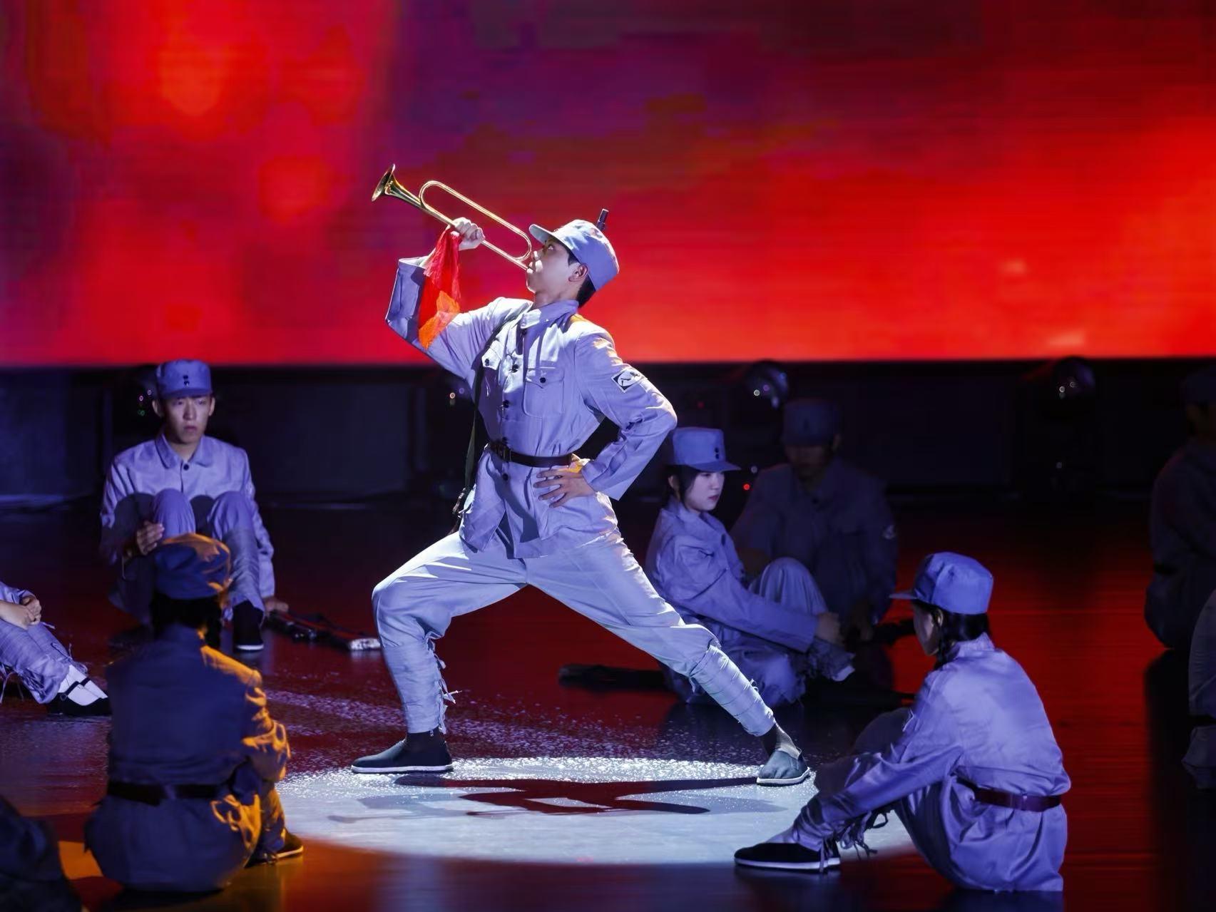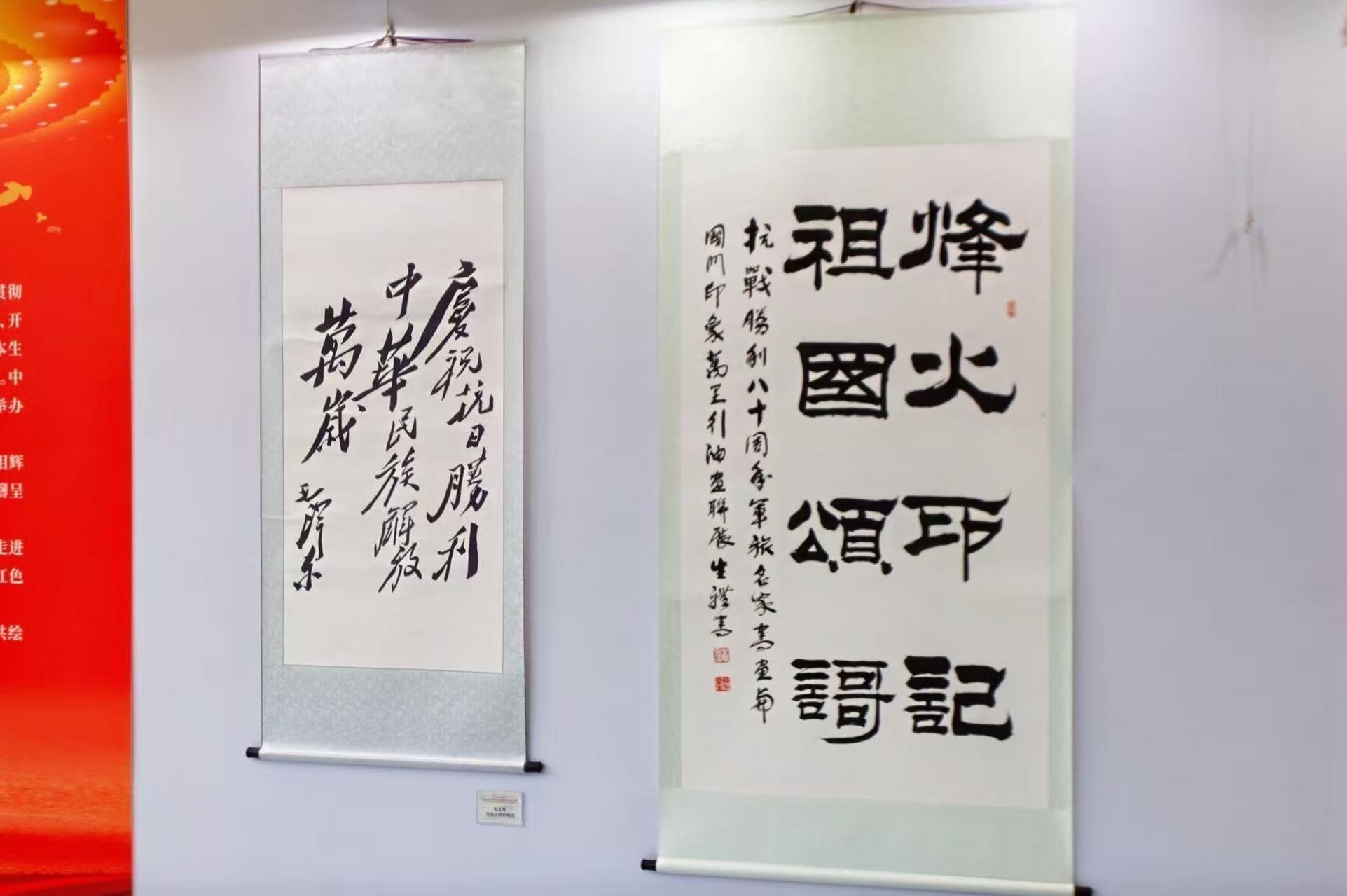 展览启动仪式上,主礼嘉宾共同为“烽火印记 祖国颂歌”主题展览揭幕,象征着抗战精神与新时代风采的艺术对话正式展开。文艺演出以《松花江上》的悲怆舞姿揭开历史序幕,《我爱你中国》的高亢歌声抒发赤子情怀,朗诵《历史的回响》与合唱《在太行山上》则将气氛推向高潮,通过歌舞、朗诵等多元形式,再现中华民族不屈抗争的壮阔史诗。 学生代表刘芷慧在分享中表示,展览让她深刻理解到“和平来之不易,青年更需自强”。