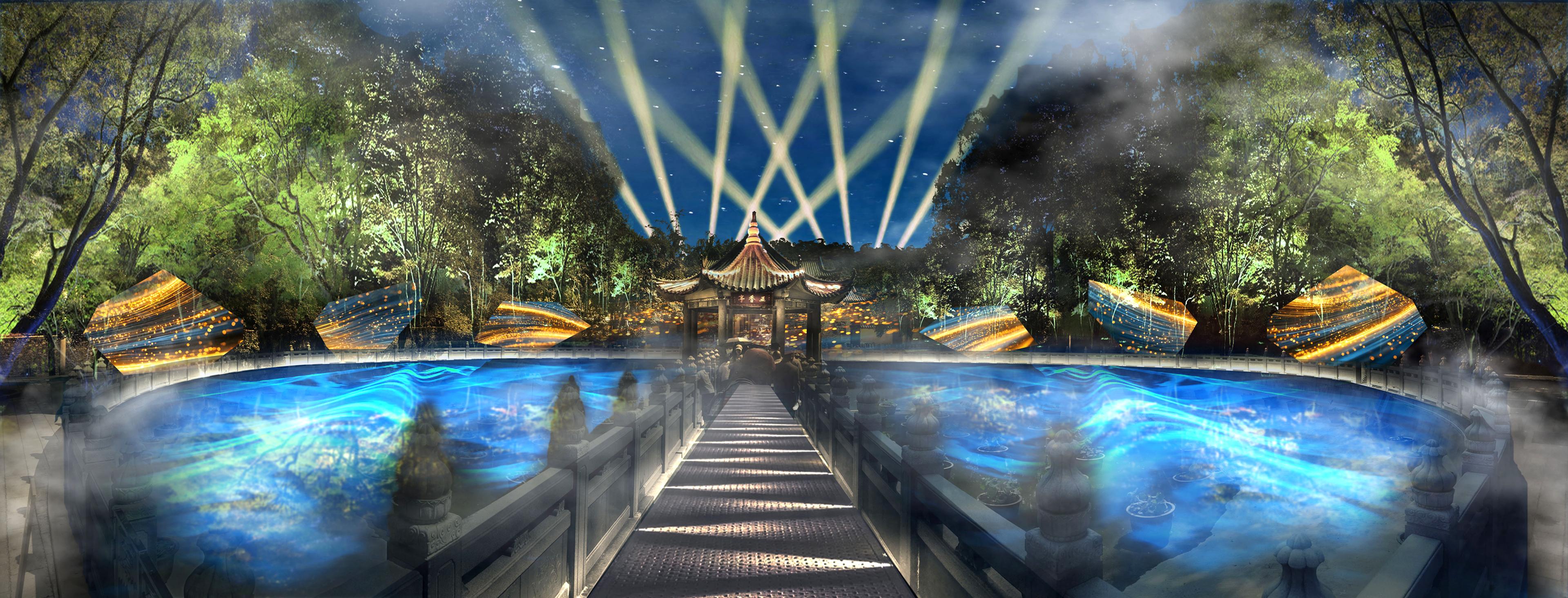 作为广美主持的国家艺术基金2025年度艺术人才培训项目《光影艺术创意设计人才培训》的成果转化,“梦幻·南华”是全国首个以中国禅宗祖庭为核心场域、以光影艺术×科技媒介×文化叙事融合呈现的大型公共艺术项目。由广州美术学院师生及《光影艺术创意设计人才培训》项目学员组成的创作团队,以“光影与禅意”为灵感,运用光色渲染、光束勾勒、数字影像等现代光影技术,营造多维度的艺术空间,让观众在光与影的交织中,体悟禅宗的宁静与当代审美的诗性。