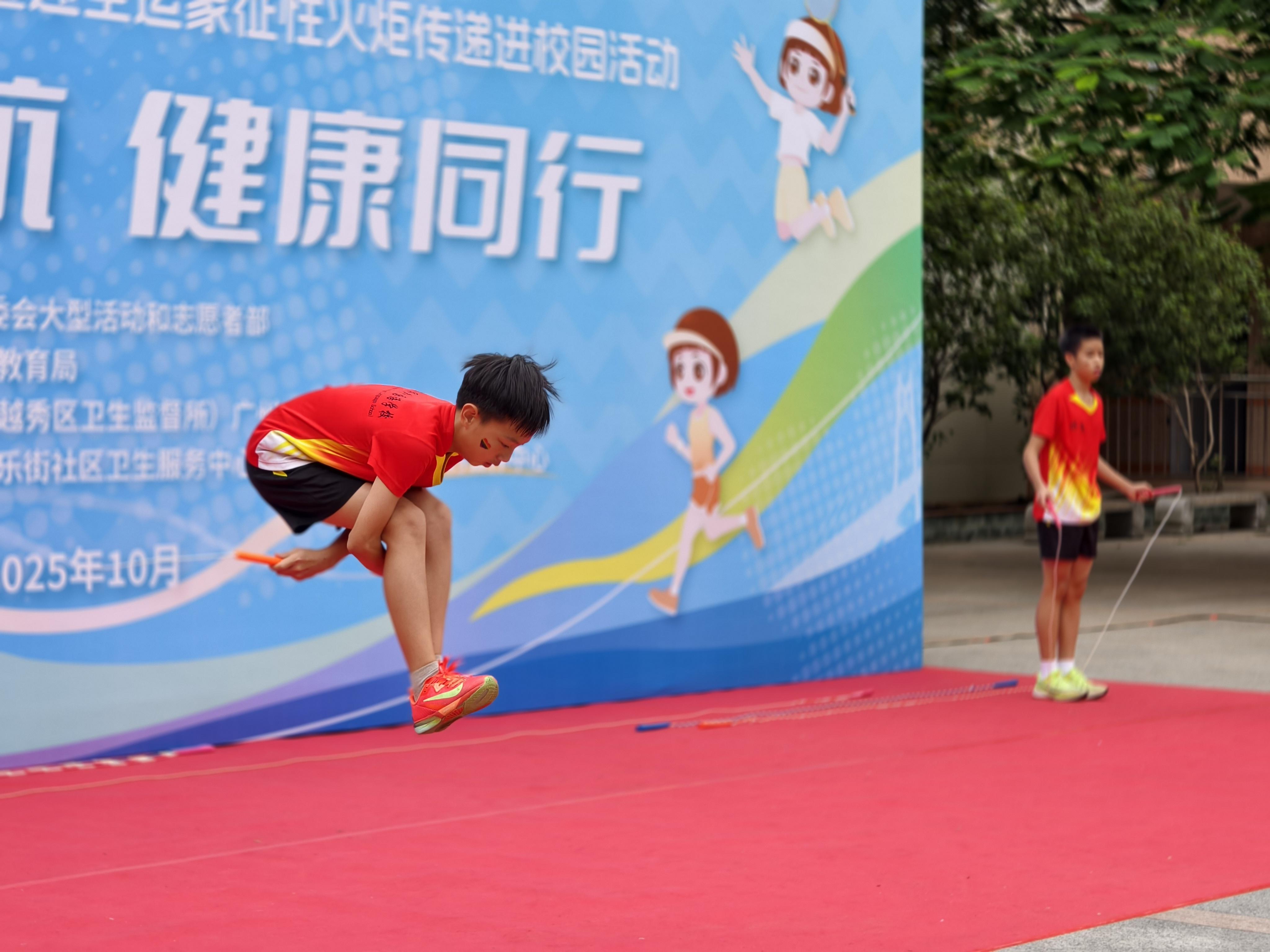 火炬传递,欢呼雷动。10月23日下午,广州市越秀区“健康教育周”拉开帷幕。相较以往,今年的“健康教育周”有些不同——它是全国首部健康促进与教育地方性法规实施后的首个健康教育周。而越秀区,选择将这份“健康第一课”直接送进了校园。
