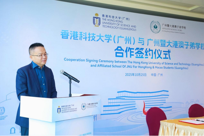 10月25日,香港科技大学(广州)与广州暨大港澳子弟学校在南沙举行合作签约仪式,宣布达成长期合作。两校将在科研实践、教育教学、人才培养、资源共享等多方面合作,将科技人才培养从高校延伸到基础教育阶段,为南沙区、大湾区乃至国家输送科技人才。签约仪式由广州暨大港澳子弟学校执行校长苏媛主持。