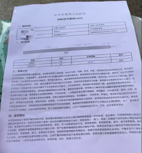 莎莎表示,不明真相的网友一直把她当成“文具店老板娘”,对其进行辱骂、诅咒等。这对其心理造成极大创伤,医院诊断显示她已出现重度抑郁。