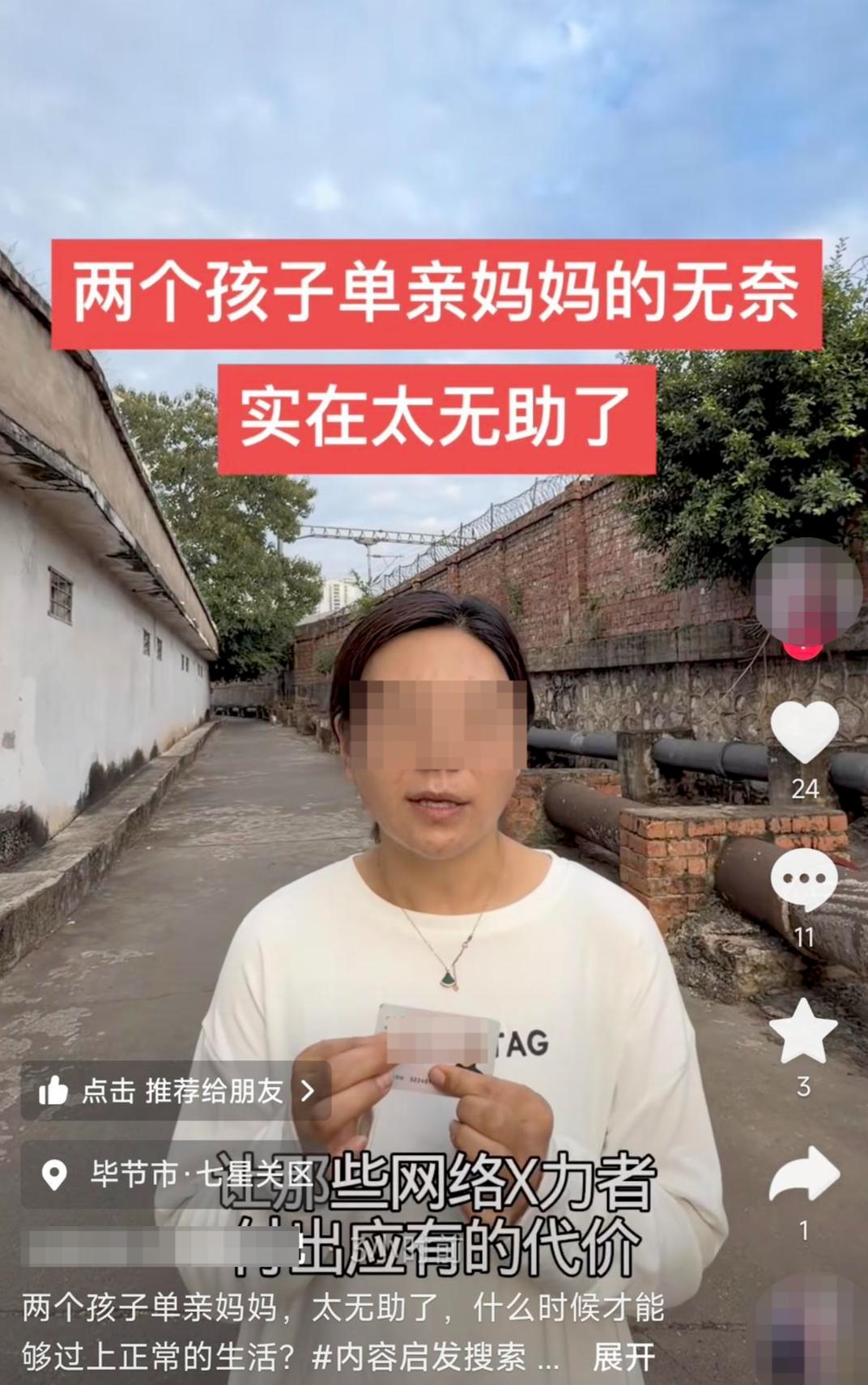 她说以前一直躲着,但如今只能站出来澄清,希望能够让那些网友知道自己是无辜的。她也在社交平台举着身份证录制视频,表示“两个孩子单亲妈妈的无奈,实在太无助了”,要为自己讨回公道。
