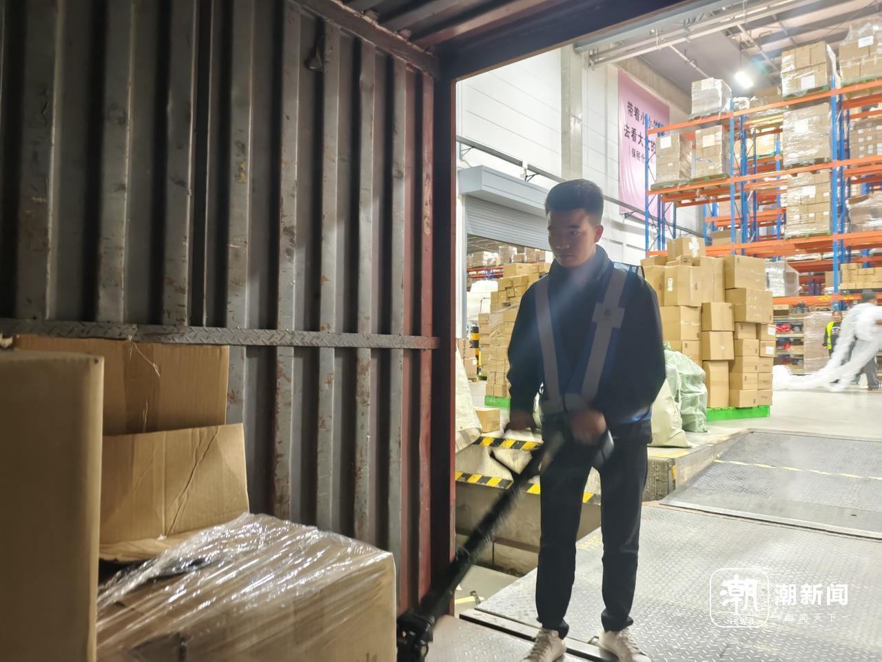 货车从口岸把商品运过来,他要开箱抽检,确认货物没有发错后才卸货。卸下来的货物,会有同事检查整理,存入仓库归档。“最近送货的车子比平时多了差不多一倍,肯定是更忙了。”