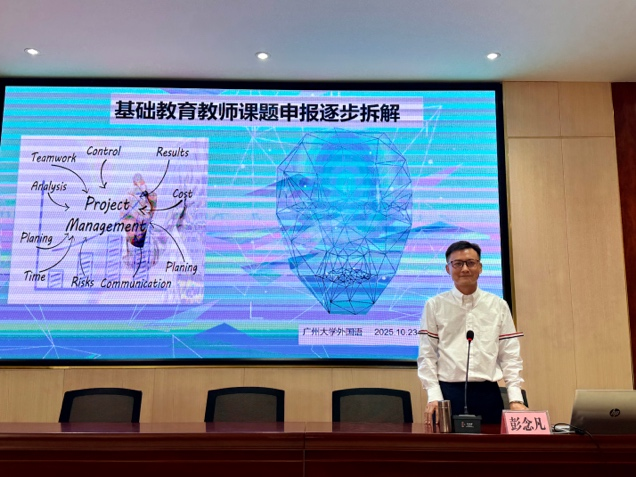 在教研活动环节,广州大学外国语学院副院长彭念凡教授带来《基础教育课题撰写逐步解构》专题讲座,系统梳理课题撰写的关键步骤与规范,从课题选题、研究现状及权威刊物分享等,到实例分析,层层拆解、步步引导,帮助当地教师突破教研瓶颈,提升科研素养。