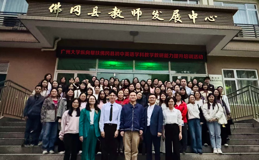 近日,广州大学纵向帮扶佛冈县初中英语学科教学教研能力提升培训活动在清远市佛冈县教师发展中心举行,旨在进一步推动基础教育高质量发展,贯彻落实《广东省师范(教师教育)院校纵向帮扶欠发达地区“三所学校”和县中质量提升工作方案(2024—2027年)》精神。