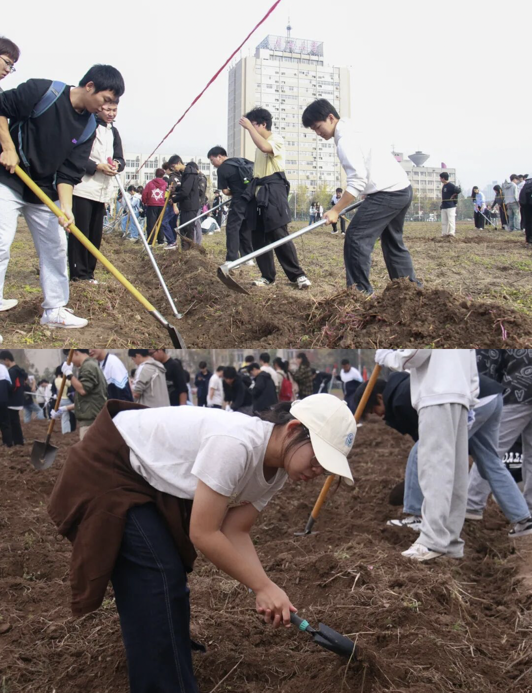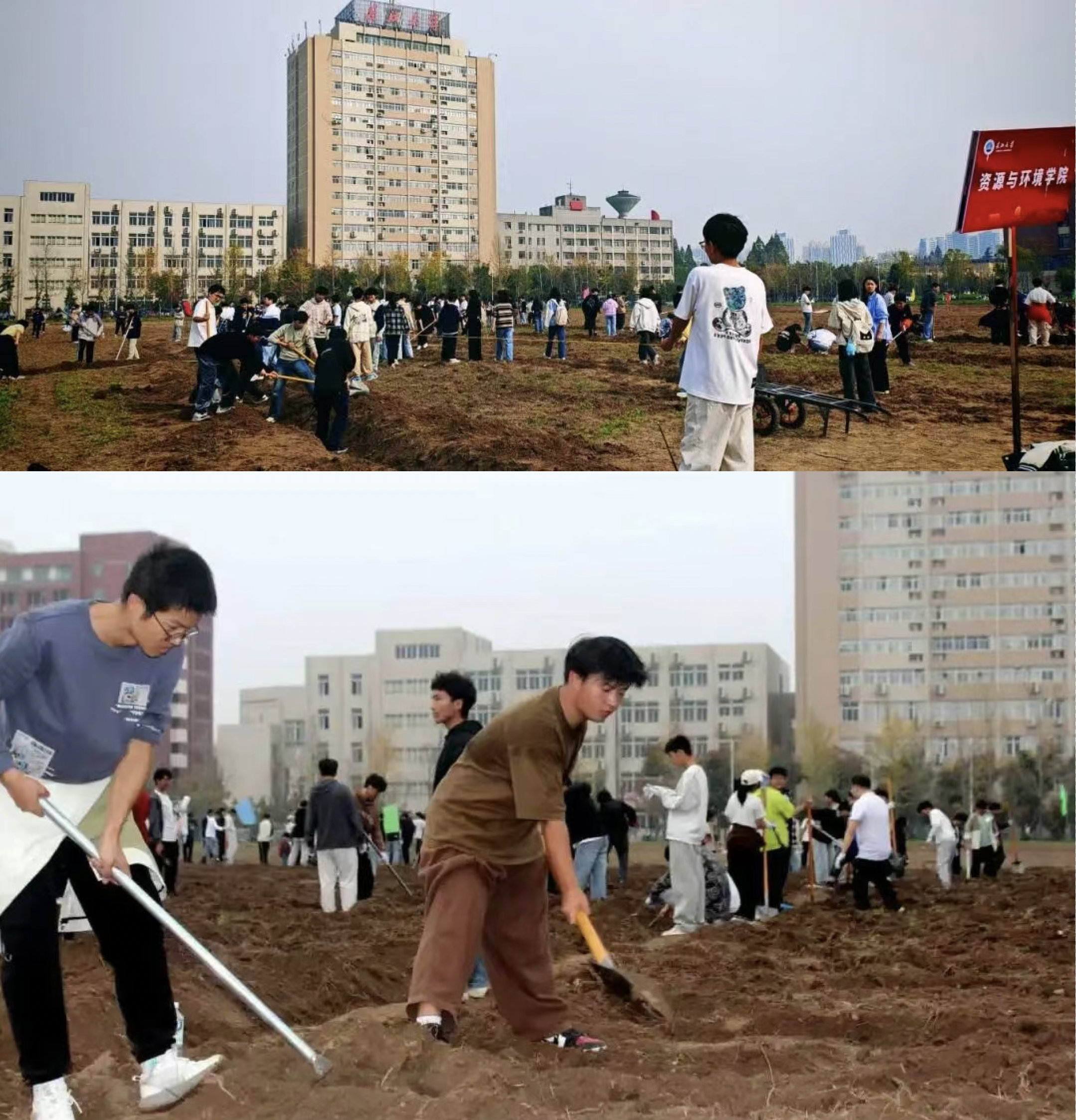 记者联系发帖网友,对方介绍,长江大学校内种地非农学院专属,而是针对所有大一新生的劳动课。校园内开垦的这片土地,原本是学校的扩建用地,暂时用作劳动教育基地。