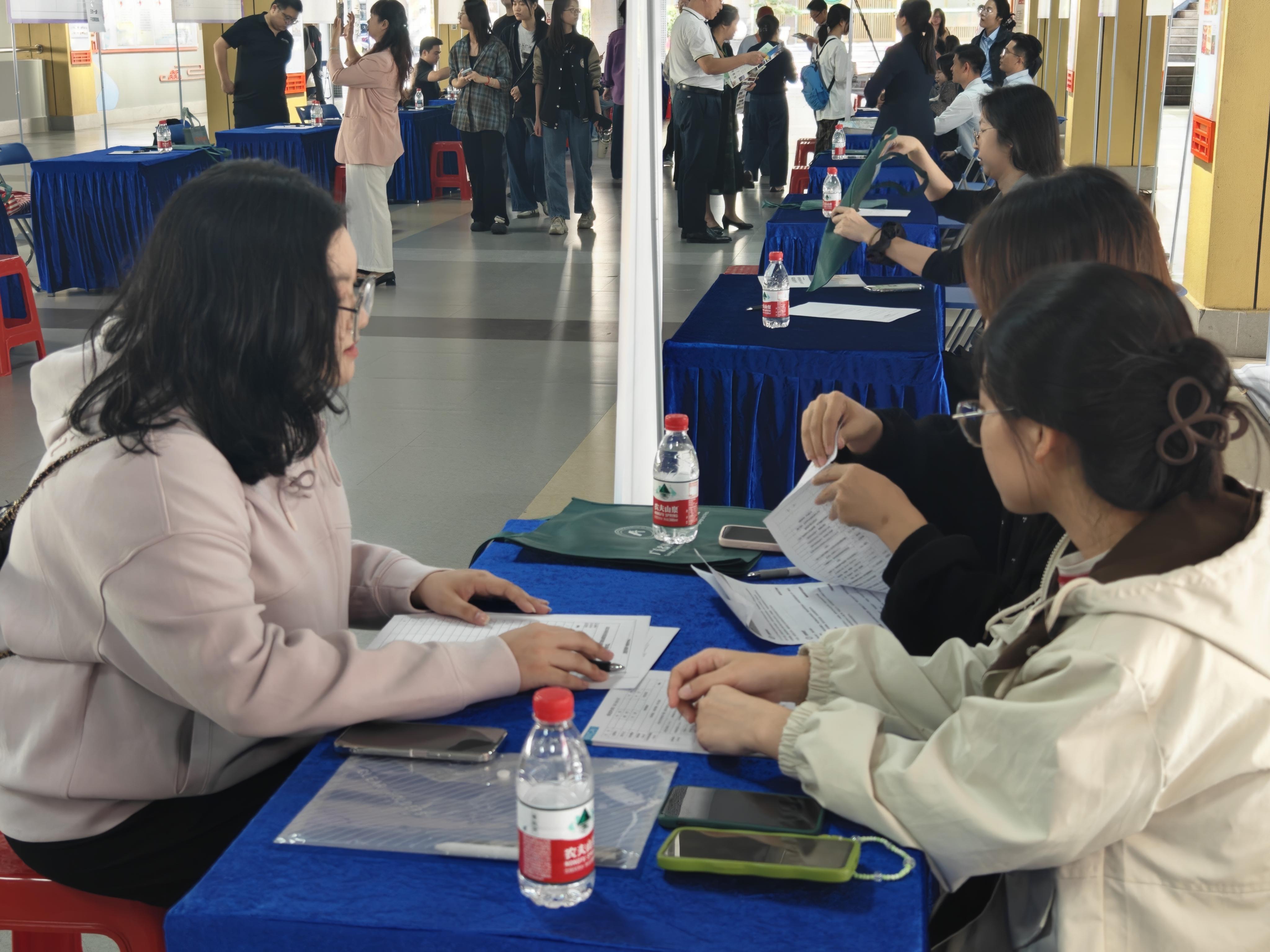 招聘会现场设置现场面试区、政策咨询区、“海纳职通”数智就业专区、直播带岗区、职业规划指导区五大功能区,近40家优质企业携718个岗位入驻,岗位供给与学校专业特色高度契合,全方位提升求职实效。