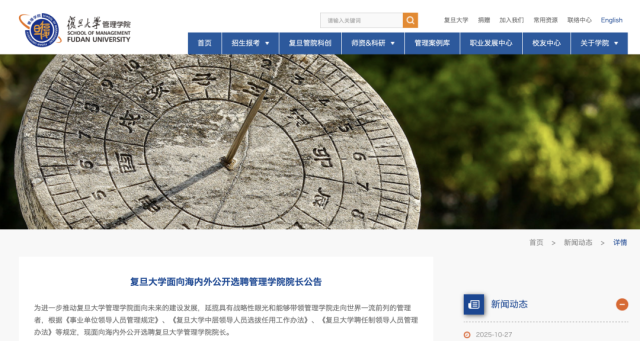 11月11日,复旦大学发布公告,面向海内外公开选聘管理学院院长。