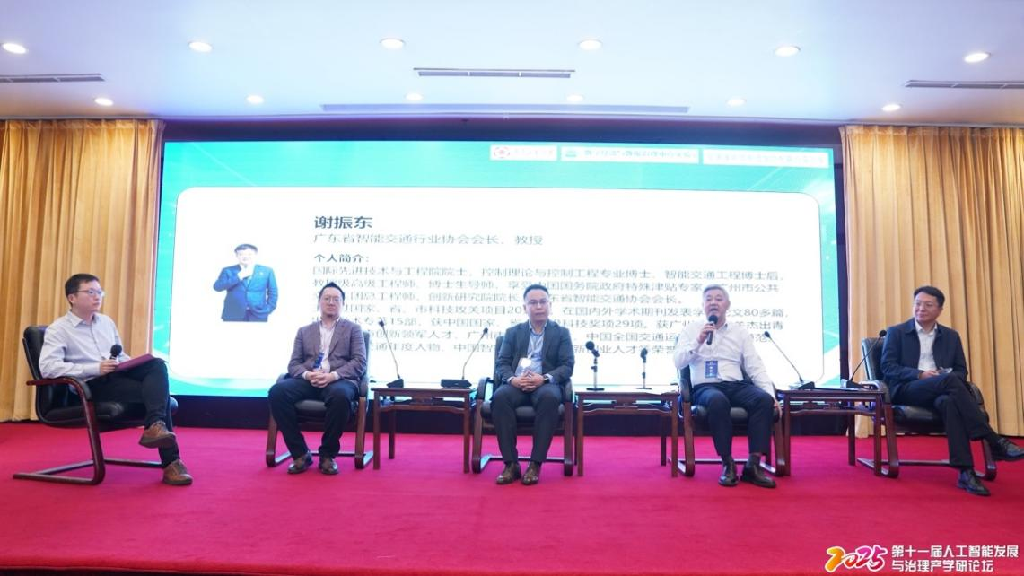 圆桌论谈环节,中国社会科学院工业经济研究所新兴产业研究室副主任渠慎宁教授主持了以“AI的实践探索与现实瓶颈”为主题的讨论。国际先进技术与工程院院士、广东省智能交通行业协会会长谢振东教授、粤港澳大湾区人工智能与自动化学会理事长谢侃教授、广东省数字经济学会常务副会长朱金周、广东省制造业协会人工智能与机器人专委会执行秘书长查祥等四位专家,就人工智能在智能交通、制造业、服务业等领域的落地应用与面临挑战进行了深度对话。