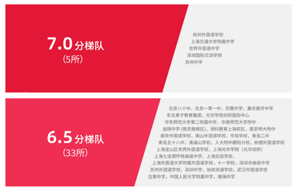 共有38所“英国文化教育协会雅思示范中学”进入6.5分及以上梯队,其中杭州外国语学校、上海交通大学附属中学、世界外国语中学、深圳国际交流学院、苏州中学(排名不分先后)等5所中学成功迈入7.0分梯队,折射出国内中学教育在国际化人才早期培养领域的积极探索与成效。