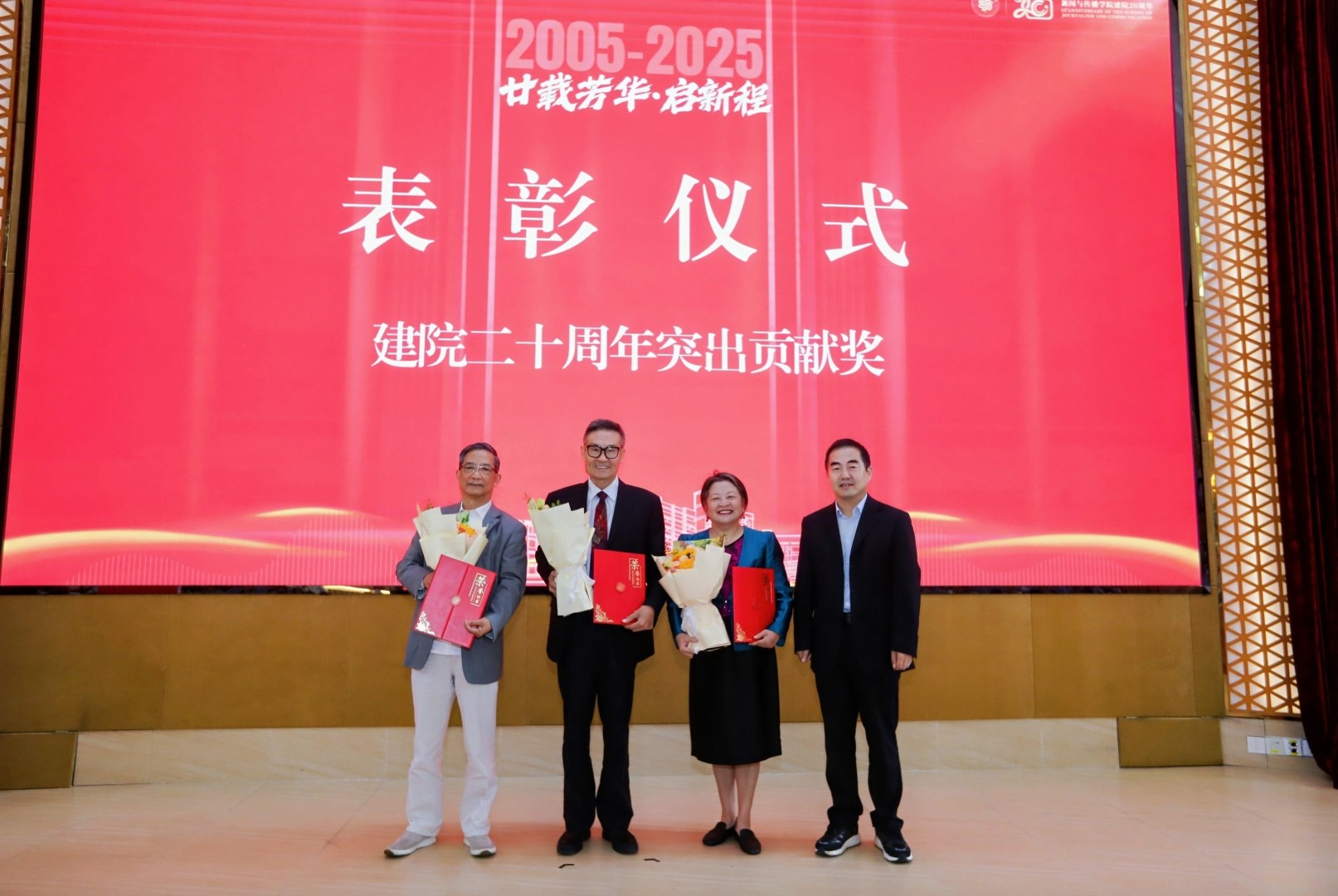 学院还向於贤德教授、何洪亮书记、郭光华教授、李淑芳教授等历任院长和学科发展奠基人颁发了荣誉证书,致敬他们为学院实现从初创到腾飞的跨越式发展所做出的贡献。二十年风雨兼程,二十年春华秋实,从青丝到白鬓,从青涩到成熟,他们用粉笔书写春秋,用爱心浇灌桃李,见证了学院从初创到壮大的每一个脚印。
