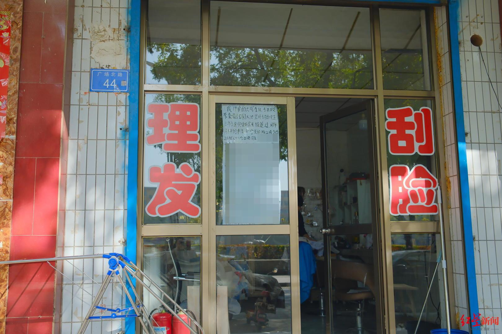 在景泰县人民广场对面,49岁的魏淑霞守着一家不起眼的10元理发店。临街玻璃门上,一张白纸格外醒目,上面写着儿子见义勇为的事迹。这是她想到的能让儿子被更多人看到的方式。