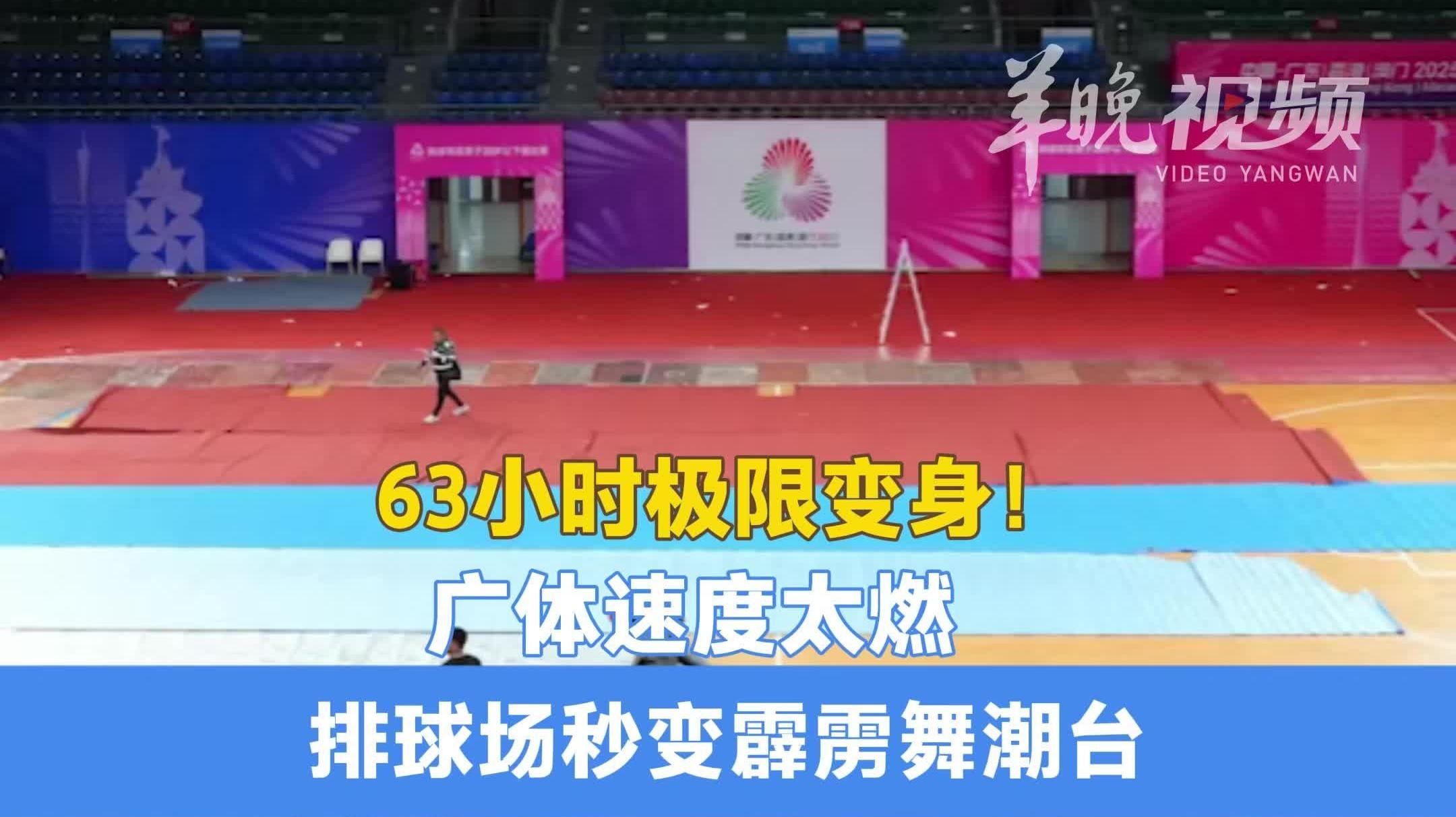 20岁以下男子排球赛事落幕后,11月12日深夜11时起,各工种无缝衔接昼夜鏖战,拆球网、清赛场、架灯光、筑潮台一气呵成。以63小时的“广体速度”完美收官,昔日排球场华丽变身为霹雳舞潮台,静待舞者燃炸登场!