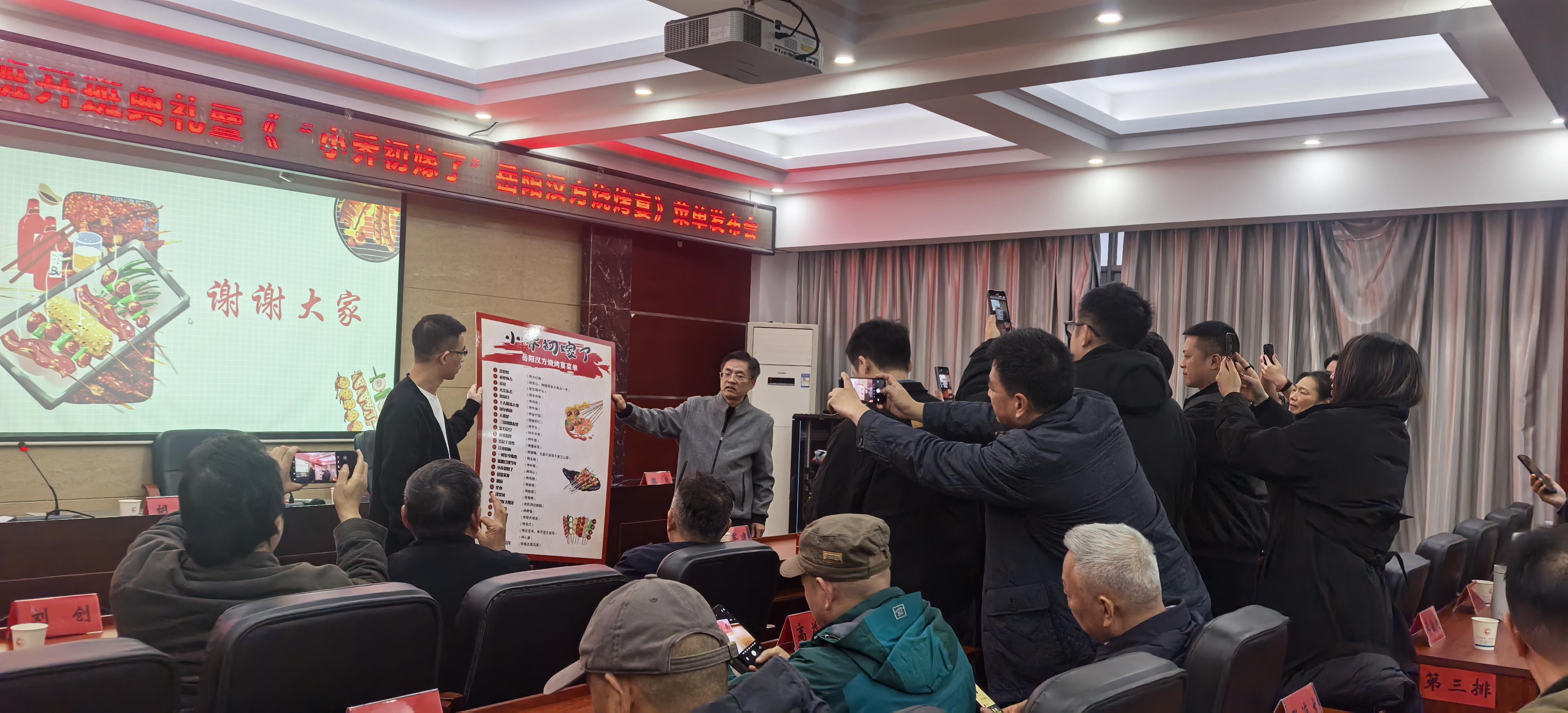 据岳阳市烧烤协会会长孟引帅介绍,岳阳烧烤学院、岳阳烧烤研究院成立后,由大学教授、烧烤专家联合组成的科研课题组深入烧烤行业各环节调研,不到四个月就编制了学院五年发展规划。期间,姜宗福牵头完成了《岳阳味道的中国烧烤通史》《烧烤店铺经营管理实务》《岳阳烧烤工艺学》三门教材的编写工作。接下来,将从人才培养、行业标准化建设、品牌文化升级以及“店经济”向“链经济”转型等方面发力,力促岳阳烧烤行业高质量发展。据悉,11月17日举行的开班仪式上还发布了《“小乔初嫁了”岳阳汉方烧烤宴》菜单。