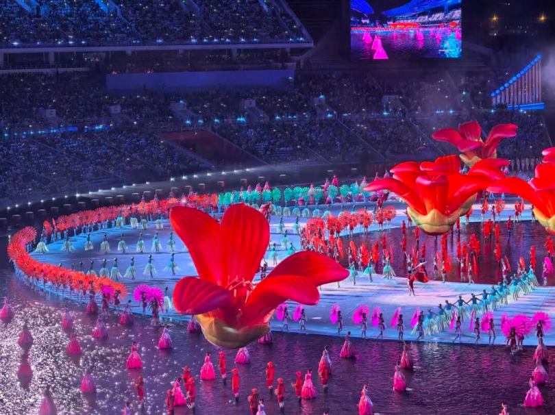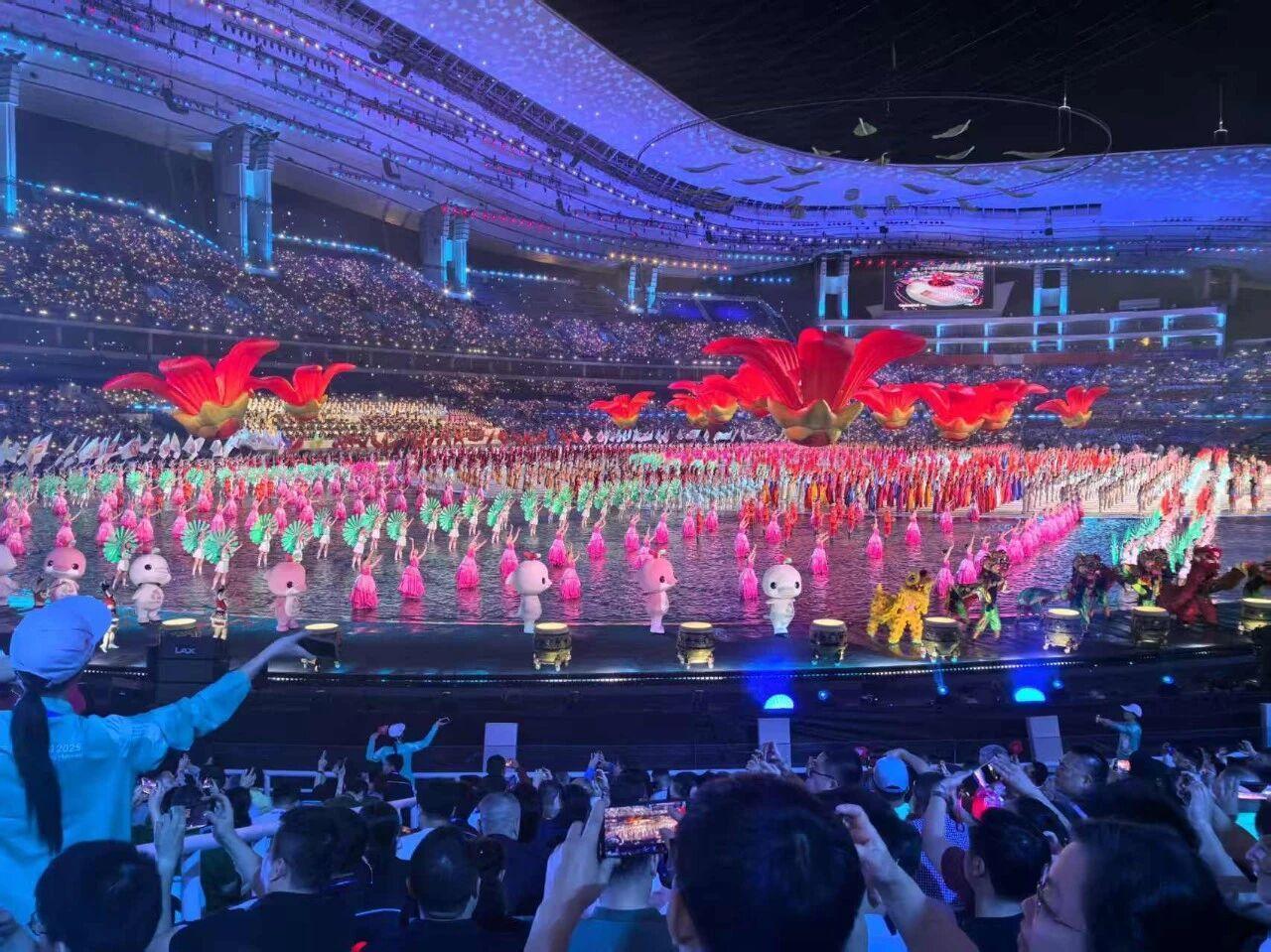 数月排练中的高温挑战、水舞台上的平衡博弈、高空威亚的恐惧突破,都被师生们以韧劲化作舞台上的惊艳瞬间。他们以艺术为笔,以热爱为墨,将岭南雅韵与体育精神、校园活力与时代气象紧密交织,为十五运开幕式注入了深厚的文化底蕴与鲜活的青春气息。