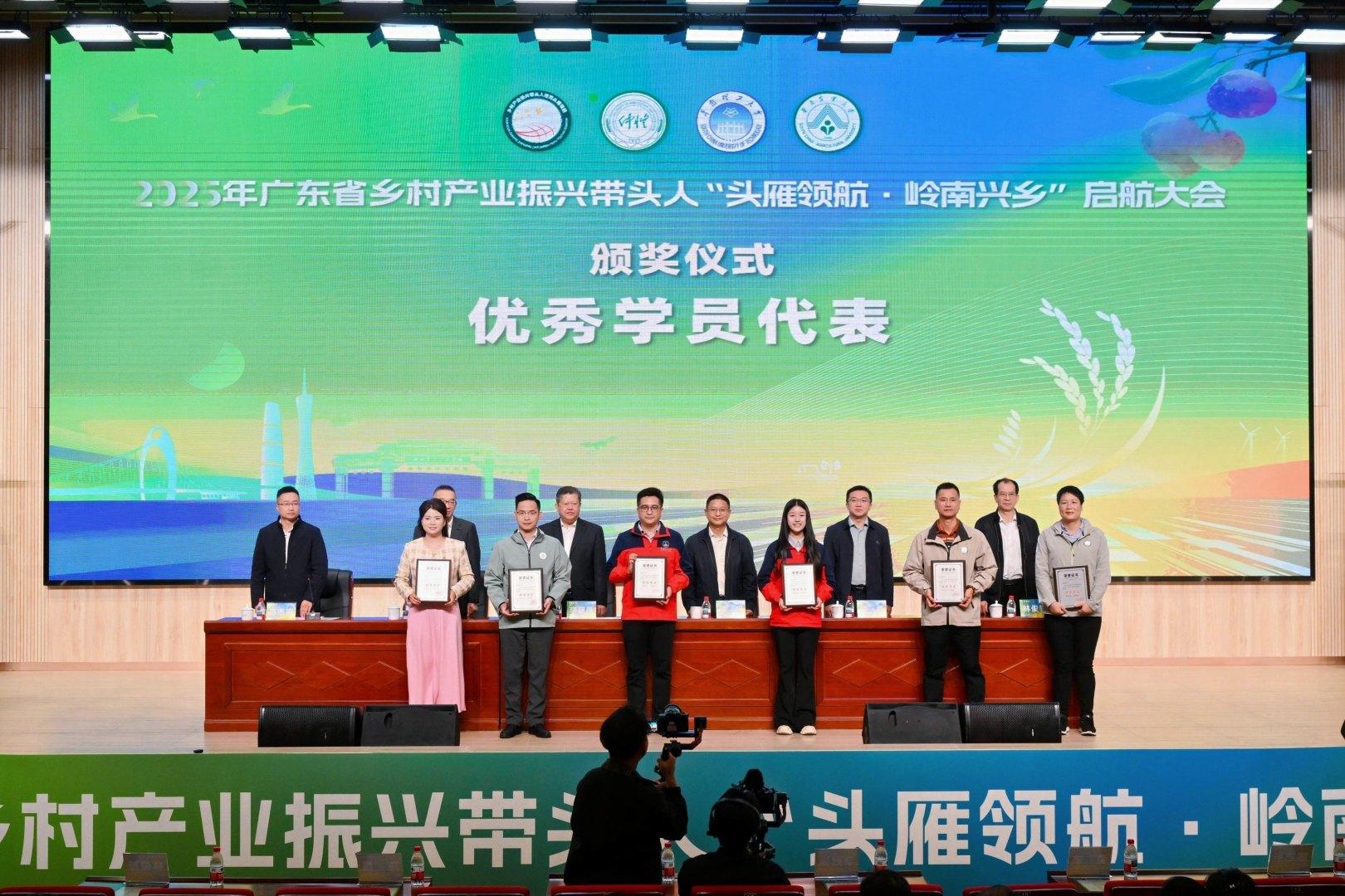 启动仪式上,一批在 2024 年培育工作中表现突出的优秀教师、导师及学员受到表彰。受邀登台领奖的优秀教师代表包括:仲恺农业工程学院蔡晓琳副教授、华南理工大学张智军教授、华南农业大学张蓓教授;优秀导师代表包括:仲恺农业工程学院刘同来副教授、华南理工大学王娟副研究员、华南农业大学刘吉平教授;优秀学员代表包括:广东鱼泽原养殖有限公司游晓瑜、广州市番禺区大石辉瑶化肥经营公司林志辉、揭西县大统农业发展有限公司方敏、广东京橘药业有限公司庞富、广东文丰农业发展有限公司黎成丰、广州雪玉茶业有限公司吴雪彩。