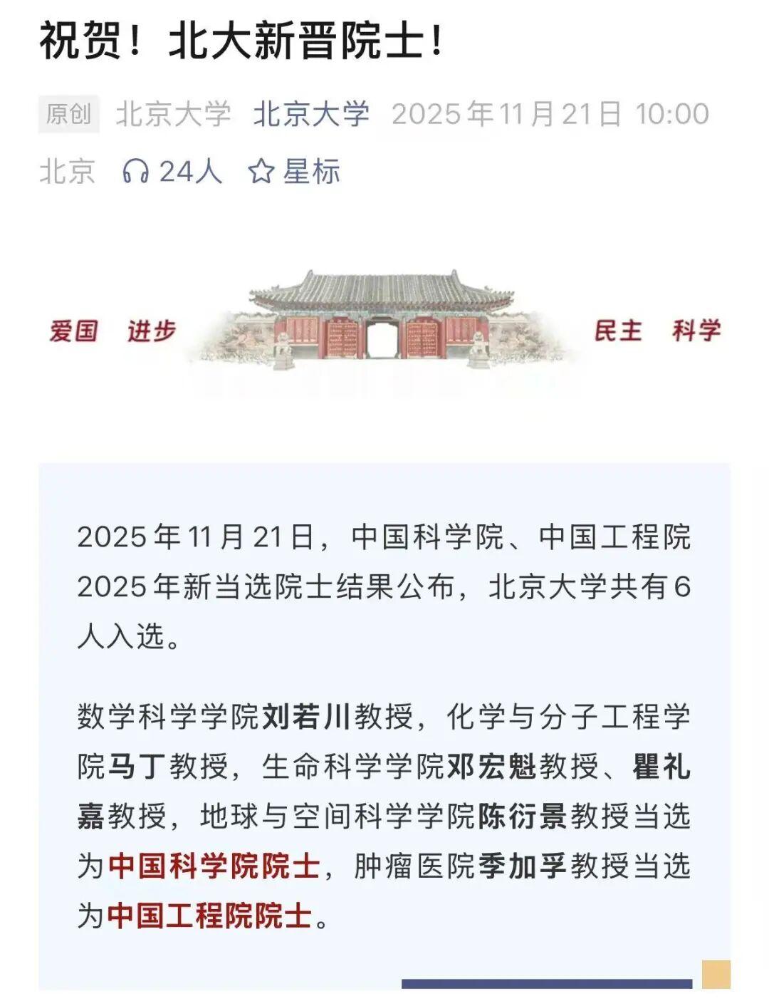 此外,2025年中国科学院新当选外籍院士27人,中国工程院新当选外籍院士24人。