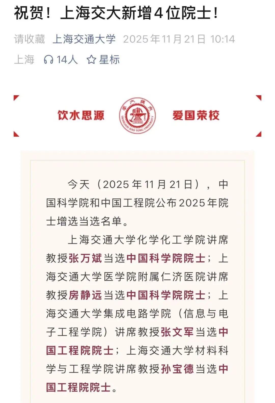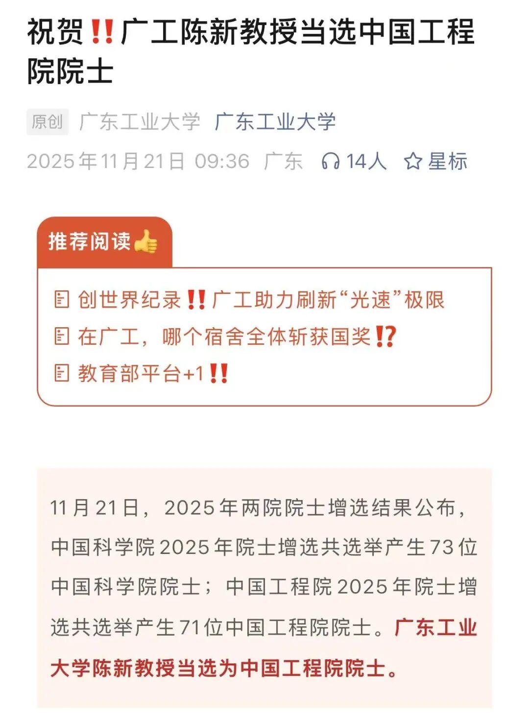 21日,2025年两院院士增选结果正式揭晓,共有144人当选。其中,共选举产生中国科学院院士73人,选举产生中国工程院院士71人。