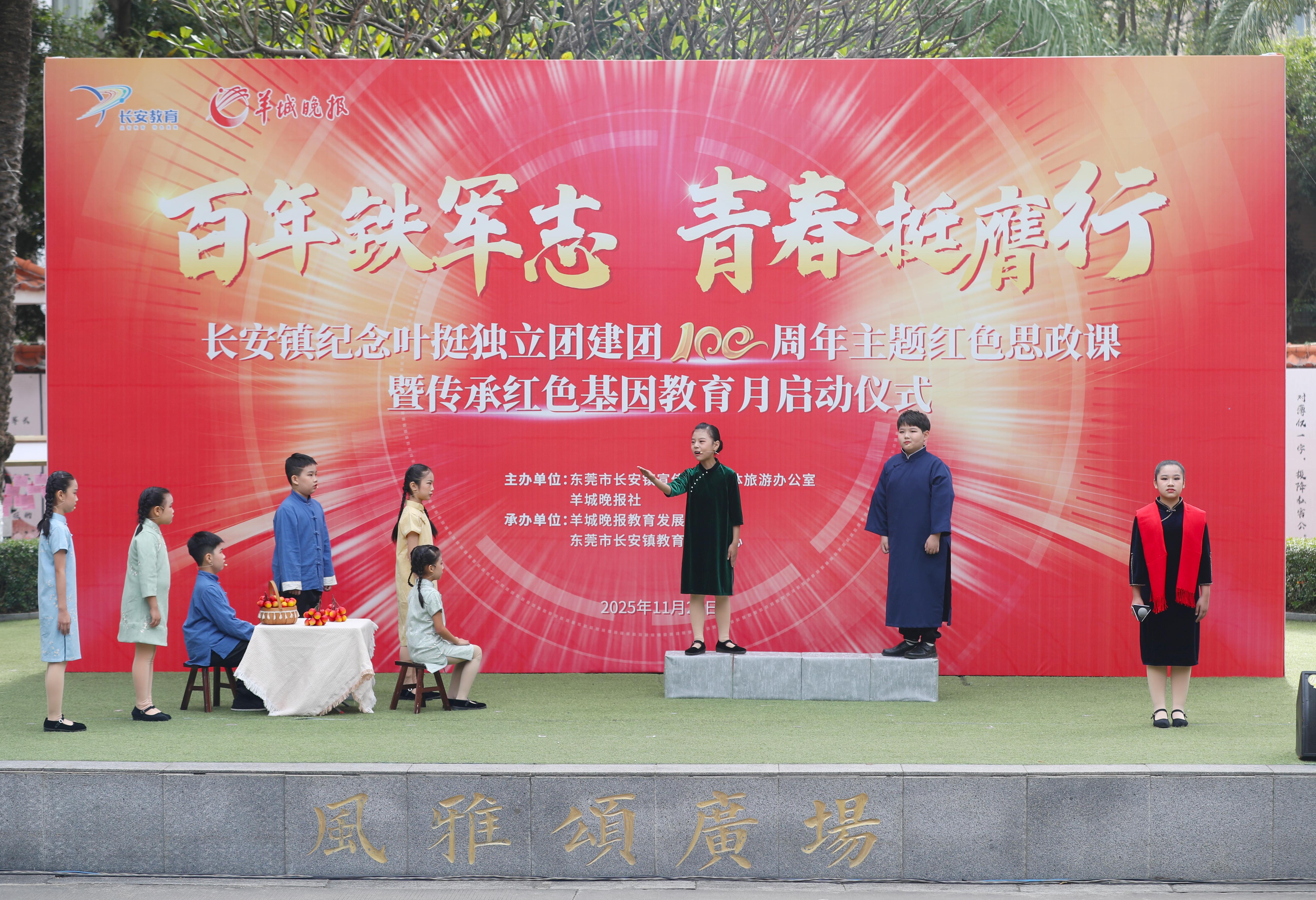当天,来自长安镇十余所中小学的学生们聚集在叶挺、李秀文雕像前,聆听那段既属于国家历史、也属于长安记忆的烽火岁月。原创红色戏剧、事迹宣讲、师生互动、“小小红色讲解员”分队授旗……一系列形式新颖、体验感强的环节,让红色教育“活”了起来。台下不论大人孩子,皆沉浸其中,活动结束后,仍回味良久。