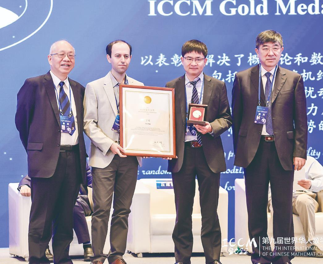 2022年回国后,丁剑在江苏南京举行的第九届世界华人数学家大会上凭借在概率论方面的突出贡献荣获“ICCM数学奖金奖”。随后,他与数学家丘成桐、杨乐等一同参加见面会。