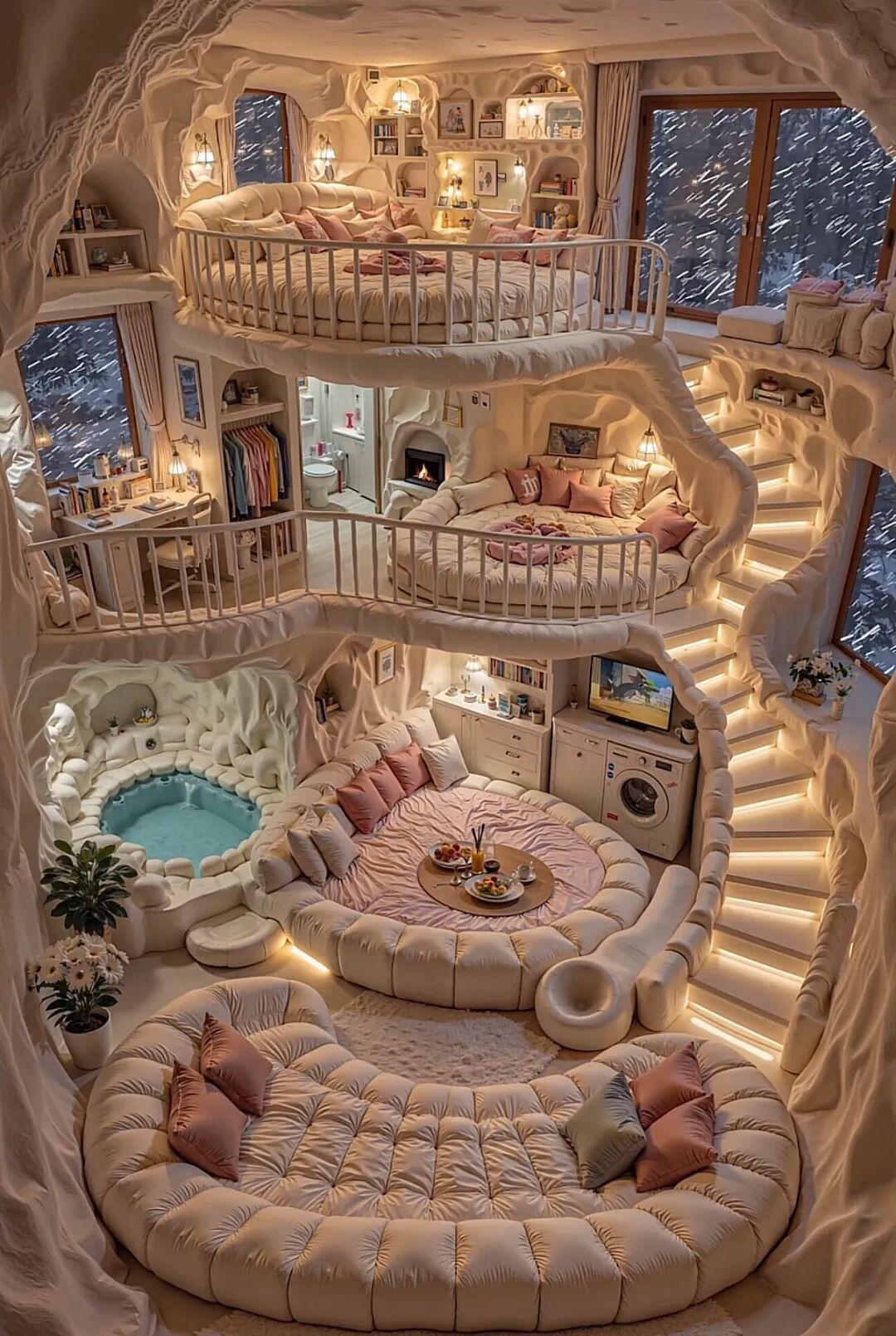 直播间里的助眠安全屋,更多做得没有这么极端。比起美式硬核庇护所,我们的安全屋多了不少自然主义气息。许多房屋设立在水边或林间,雪山之上或湖中央,有的甚至看上去和一个装修精美的中产房屋无异,但在这里,你似乎永远想象不到有人会来做客的场景。