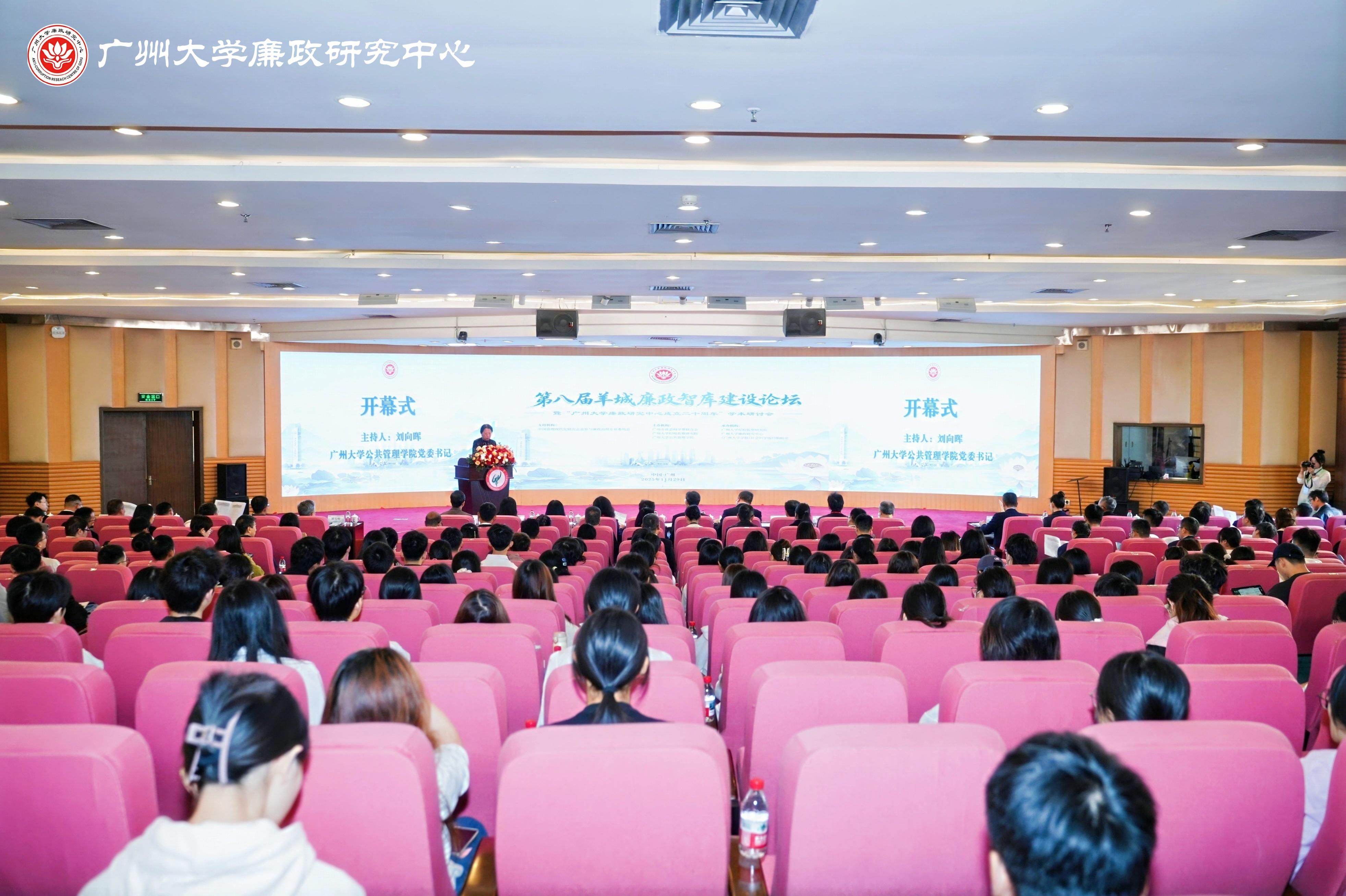 11月29日,第八届羊城廉政智库建设论坛学术研讨会在广州大学举行。本次论坛由广州市社会科学界联合会、广州大学纪检监察研究院、广州大学公共管理学院主办,广州大学廉政研究中心、《广州大学学报(社会科学版)》编辑部承办,得到中国管理现代化研究会监察与廉政治理专业委员会的大力支持。