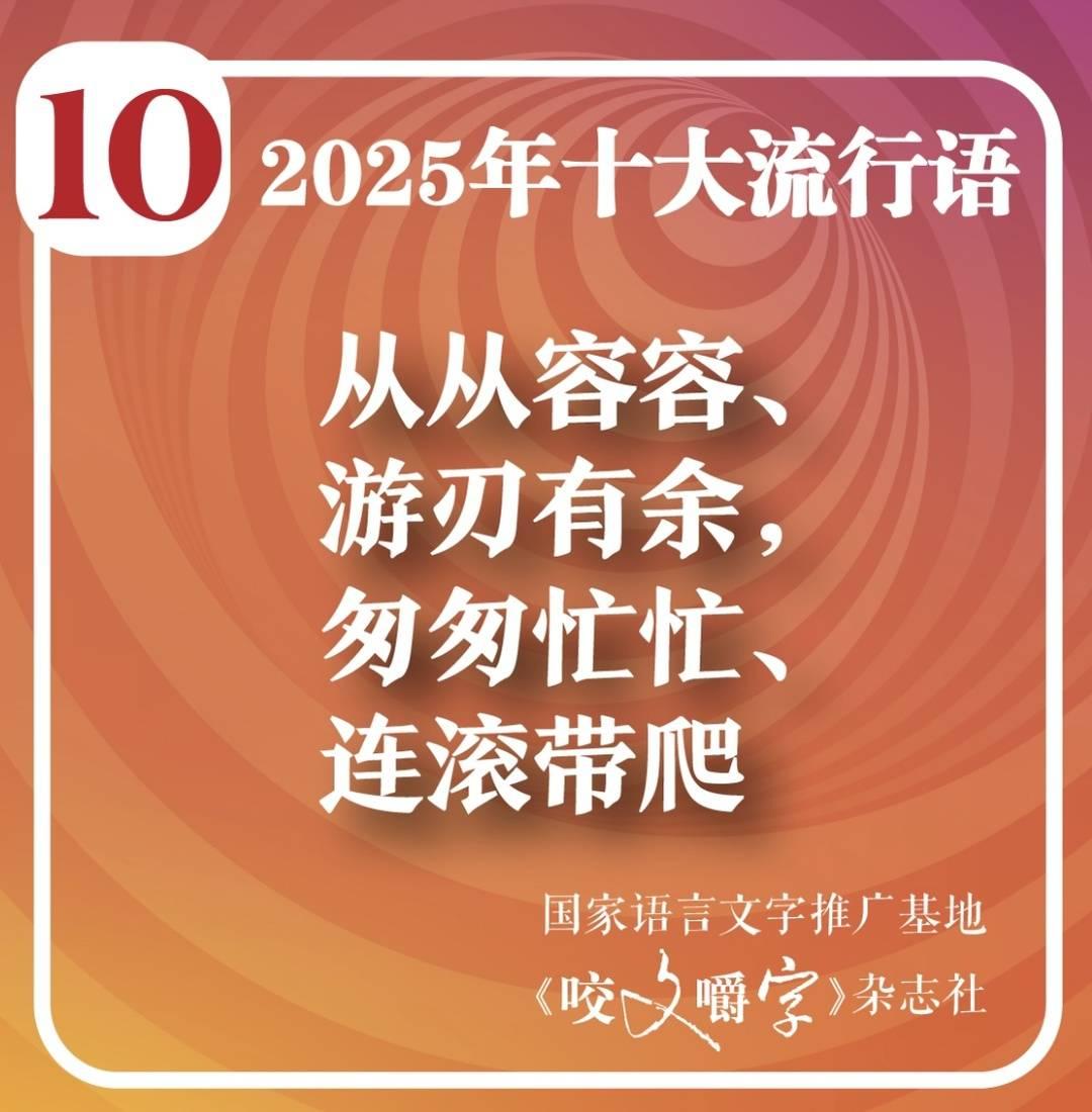 据《咬文嚼字》主编黄安靖在“2025年十大流行语”发布说明中解释说,本年度评选依然沿袭一贯的“双标准”原则,即坚持社会学和语言学评选标准。“韧性”位居榜首,“苏超”“赛博对账”也高票入选,这说明这一年度的大事要事、社会热点,都得到了社会的广泛关注。