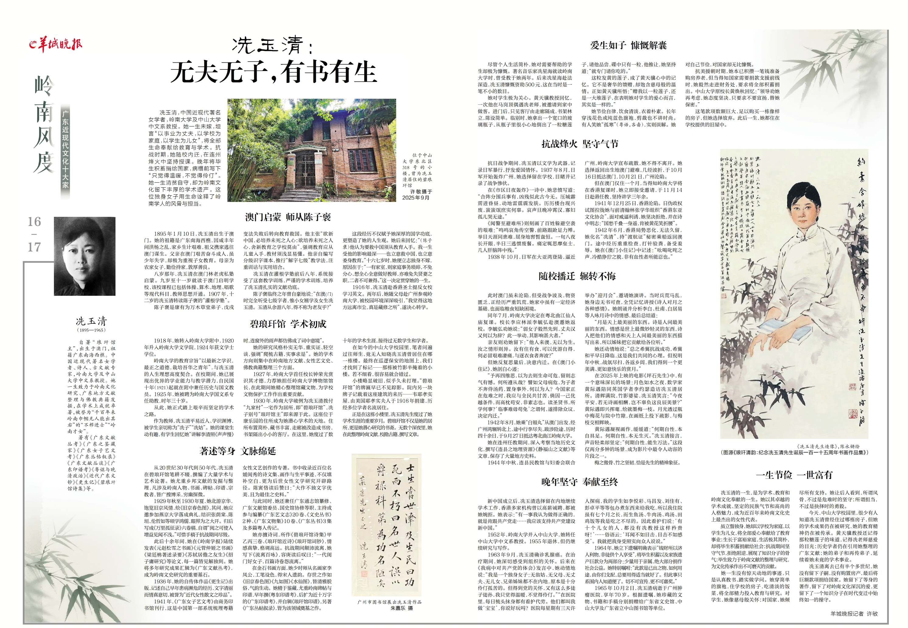 冼玉清离去已有半个多世纪,她没有留下子嗣,没有购置房产,最后将巨额款项捐给国家。她留下了等身的著作,留下了对岭南文化深沉的爱,更留下了一个知识分子在时代变迁中始终如一的操守。(除署名图片外,本文图片均为资料图片)