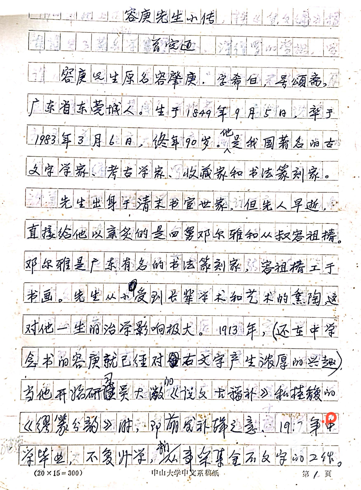 回顾容庚近一个世纪的学术人生,从东莞少年到北大研究生,从燕园到康乐园,他始终以金石般的坚韧钻研学问,以赤子般的真诚培育后学。他在古文字学、青铜器学、书画碑帖学等领域的开创性贡献,连同他捐赠的丰富收藏,已成为民族文化宝库中的瑰宝。