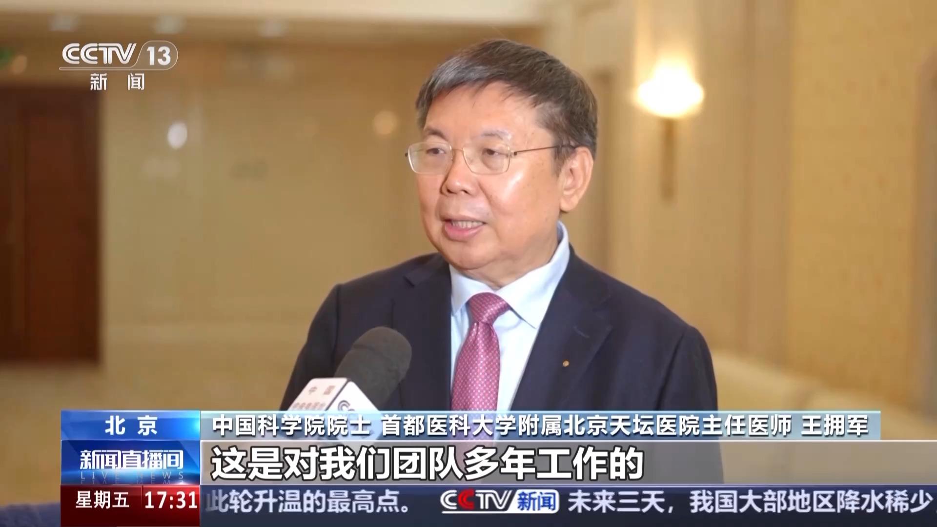 中国科学院院士 首都医科大学附属北京天坛医院主任医师 王拥军:这是对我们团队多年工作的一个鼓励、一个肯定,是我们新的一个起点。中国是前所未有地站在了科学的最前沿,这是历史上没有的,我也期待着十年之后,中国医学能够进入下一个新的阶段。