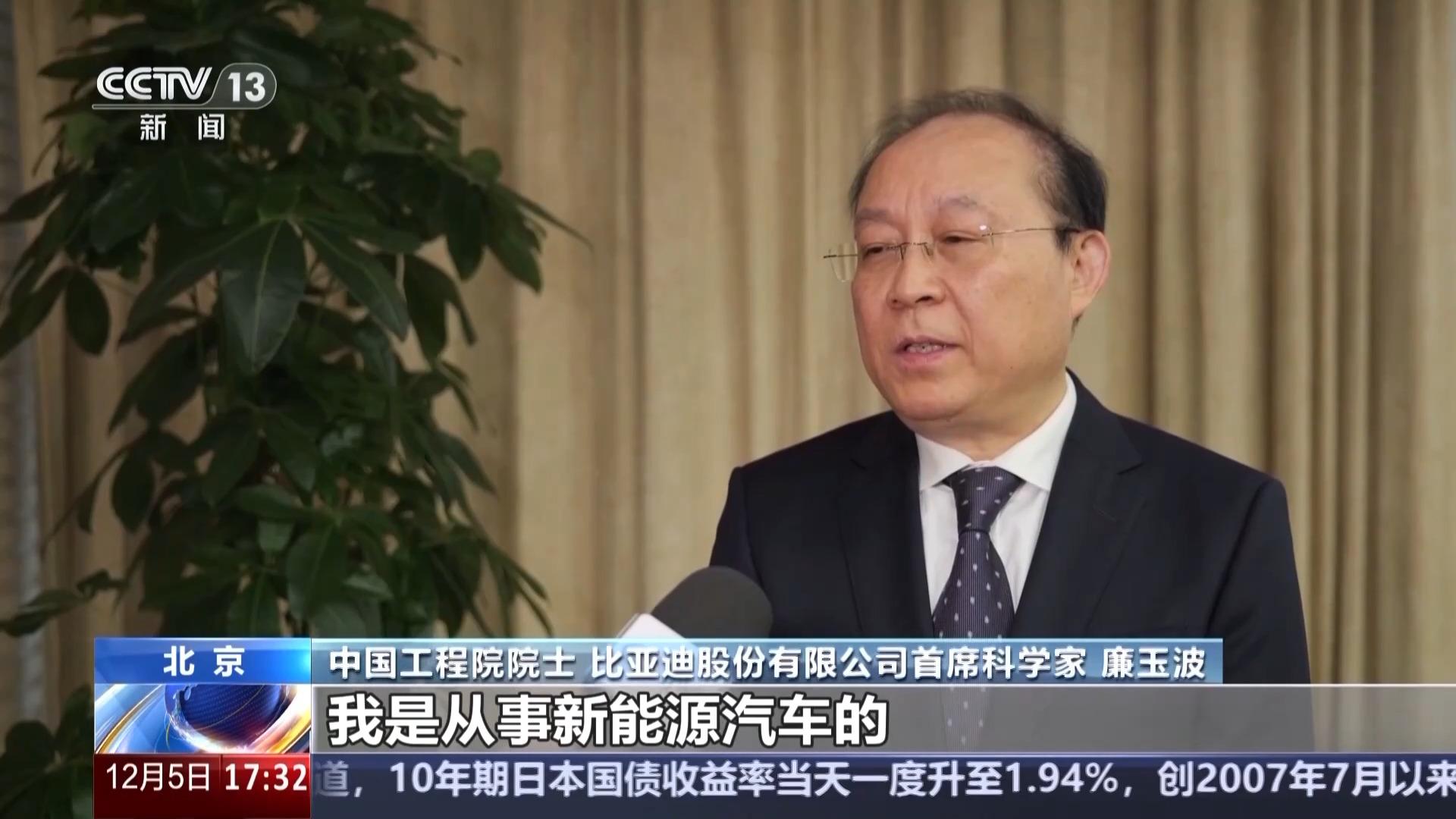 中国工程院院士 比亚迪股份有限公司首席科学家 廉玉波:我是从事新能源汽车的,我们的科技创新和产业创新得到了国家的认可,对我们来说也是一个极大的鼓励。“十五五”(时期),我们工程技术团队要进一步耕耘,在未来的智能(化)、电动化(融合发展)当中,我们要继续发挥我们领跑的优势。