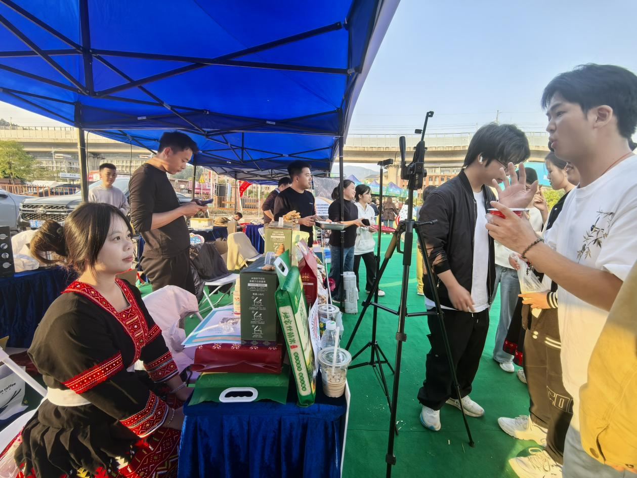 在直播带货专区,财经商贸类专业的学生志愿者现场操作,流畅地向线上观众推介清远优质农产品;在互动游戏与打卡点,志愿者们有序组织,让参与者在趣味中了解清远农业文化。