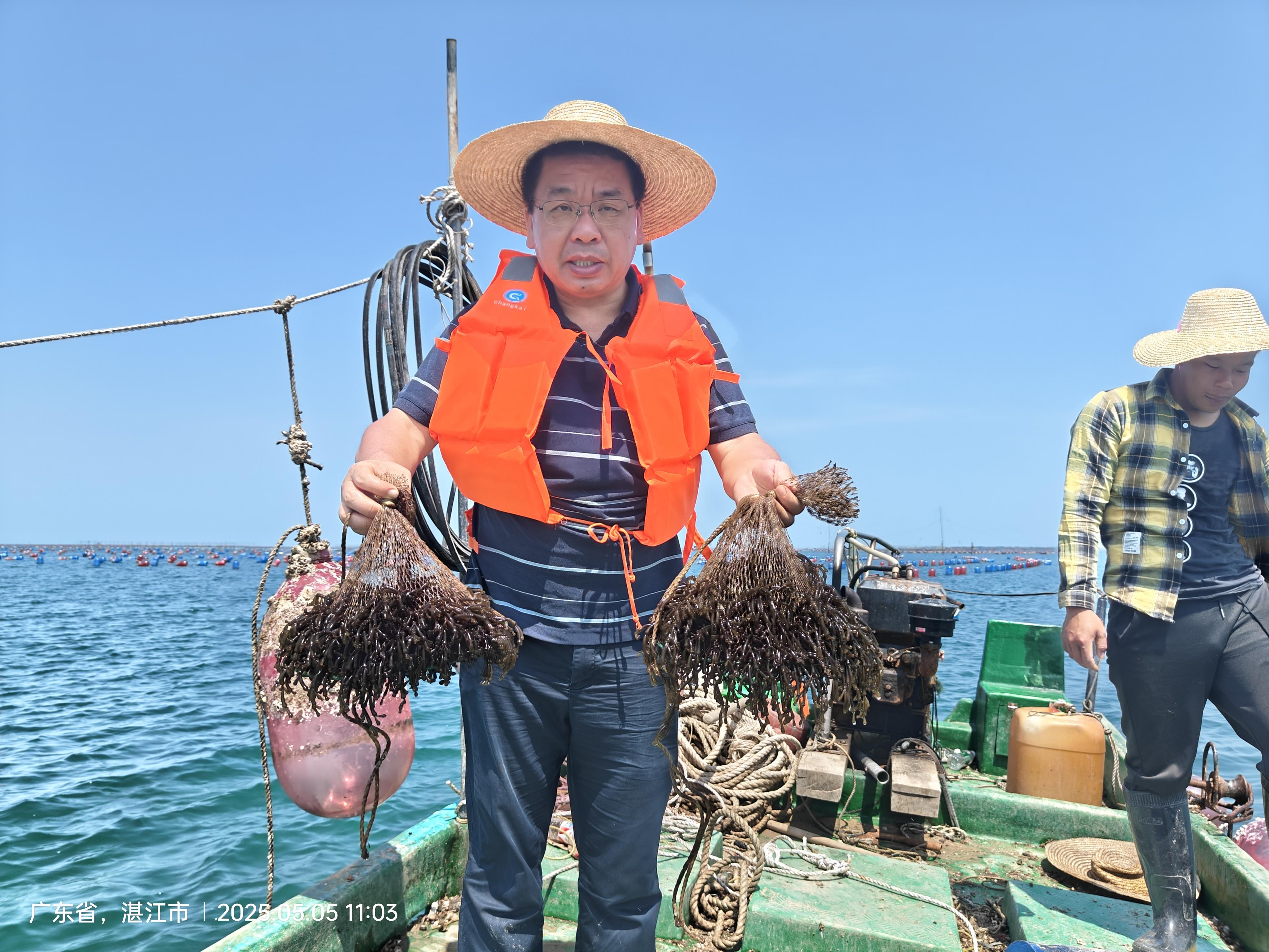尤为可贵的是生态效益。在流沙湾示范区,团队构建“鱼-贝-藻”生态养殖模式:鱼排泄物为单胞和大型藻类提供营养,而单胞藻类为贝类提供饵料。邓岳文强调:“珠母贝是‘海洋清道夫’,滤食单胞藻净化水质。”实现经济与生态效益双丰收。