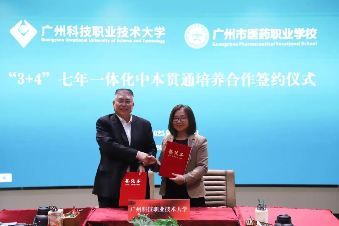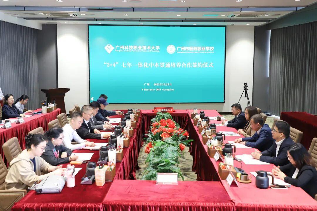 12月9日,广州市医药职业学校与广州科技职业技术大学举行“3+4”七年一体化中本贯通培养合作签约仪式。两校计划依托广州市医药职业学校“制药技术应用”专业与广科大“药学”专业,开设“中本贯通班”,合作完成七年一体化的医药健康职业技术人才培养。