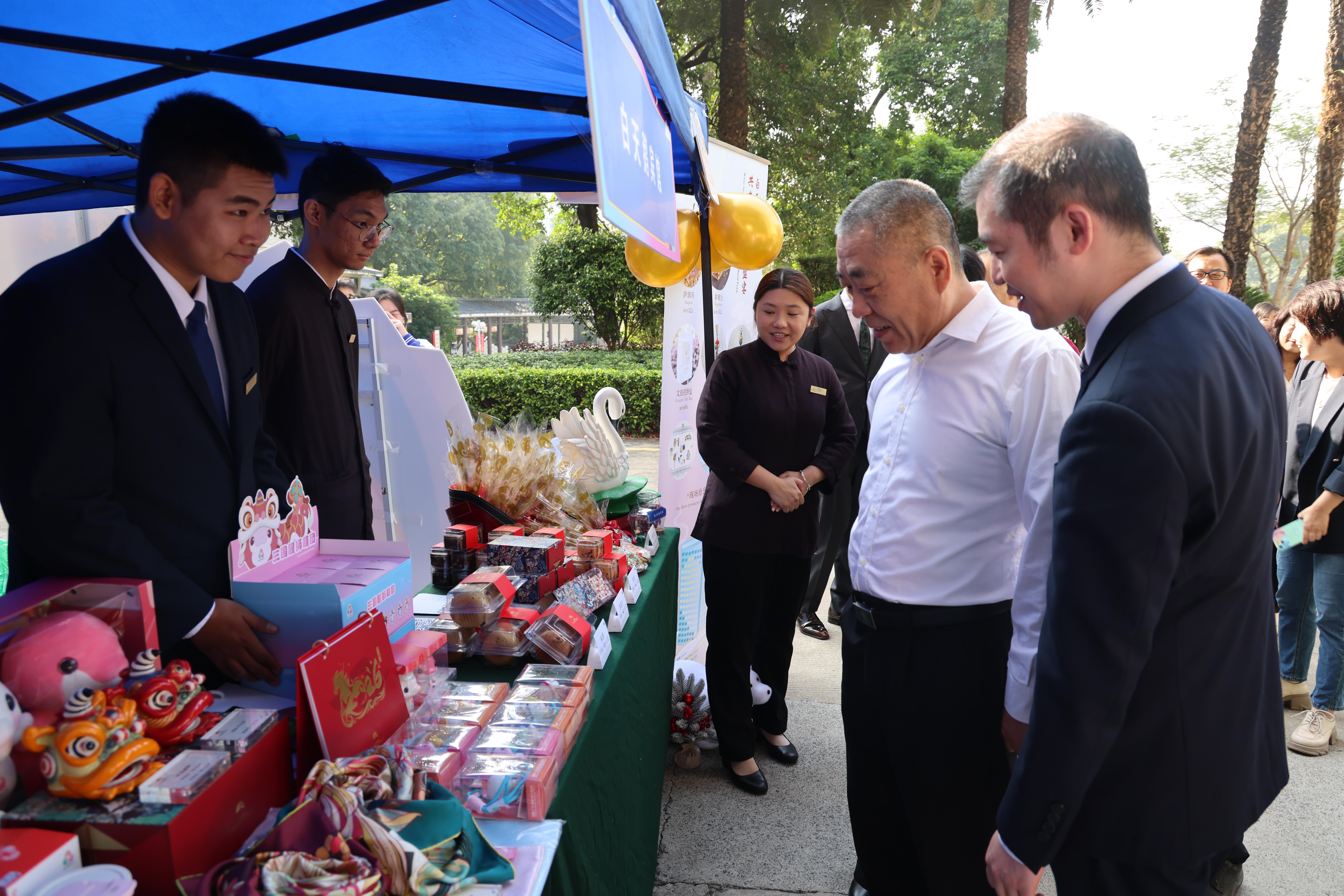 12月24日,广州旅游商务职业学校的校园里迎来了一批特别的“考官”——来自白天鹅宾馆等数十家知名酒店、餐饮及会展企业的代表们手持评选票,穿梭在一个个精心布置的摊位间,时而驻足品鉴特色调饮,时而细致询问文旅产品特色与设计思路……