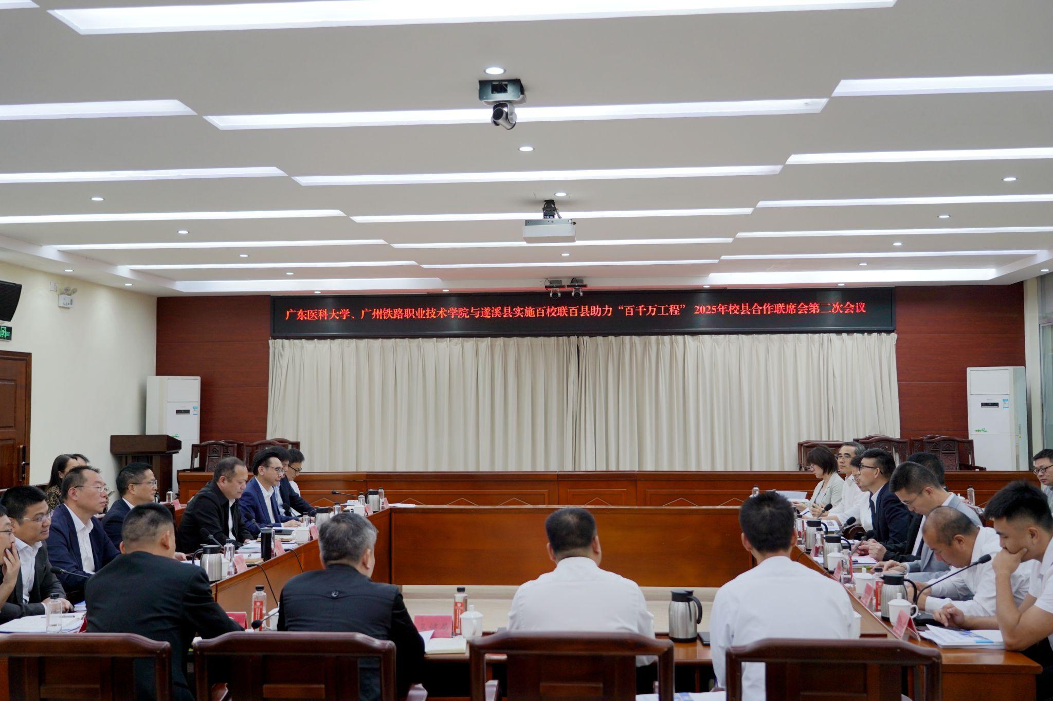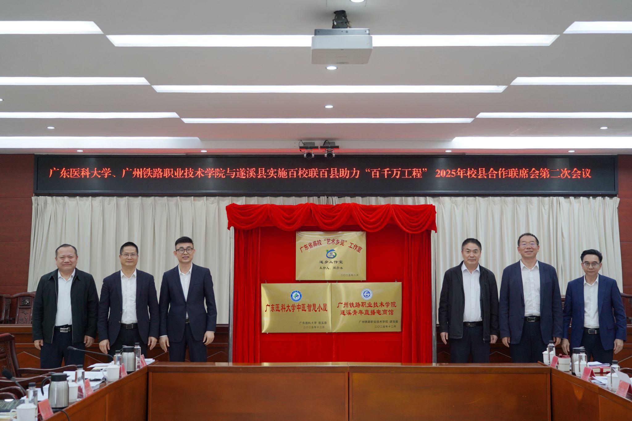 日前,由广东医科大学、广州铁路职业技术学院与遂溪县共同举办的2025年“百千万工程”校县合作联席会第二次会议在广东省湛江市遂溪县举行。会上,广东高校“艺术乡见”遂乡工作室、广东医科大学“中医智慧小屋”、广州铁路职业技术学院遂溪青年直播电商馆正式揭牌。