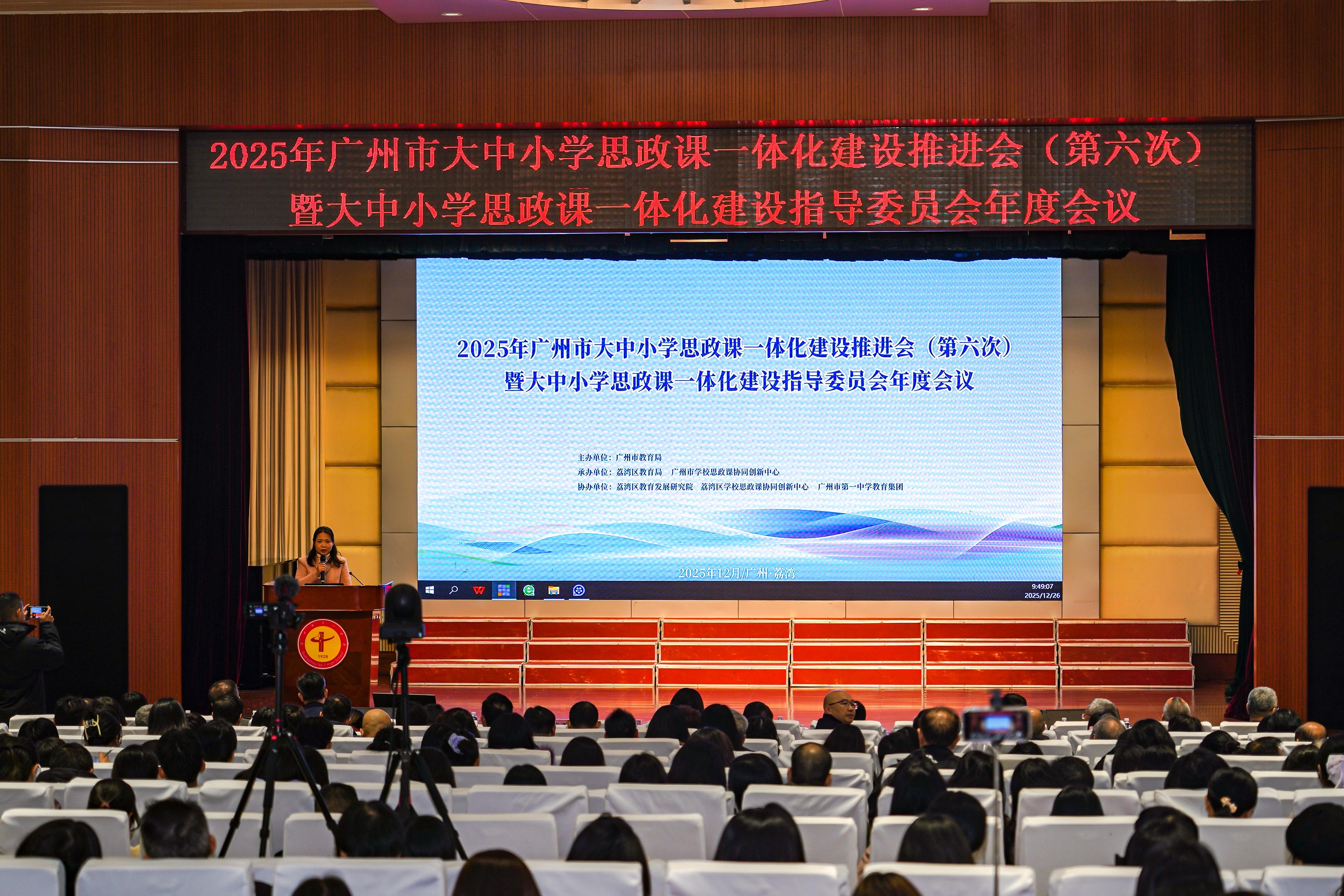 12月26日,2025年广州市大中小学思政课一体化建设推进会暨指导委员会年度工作会议在广州市第一中学举行。这场会议不仅是对过去一年广州学校思政课建设的全面回顾和深度检阅,更是一场关于如何锚定“十五五”、推进“大思政”的深刻对话与深入谋划。市教育局党委委员、副局长陈学明,相关职能部门负责人、高校专家及一线思政课教师代表700余人齐聚一堂,共同见证广州思政课从“各行其道”到“相知和鸣”的华丽蜕变。