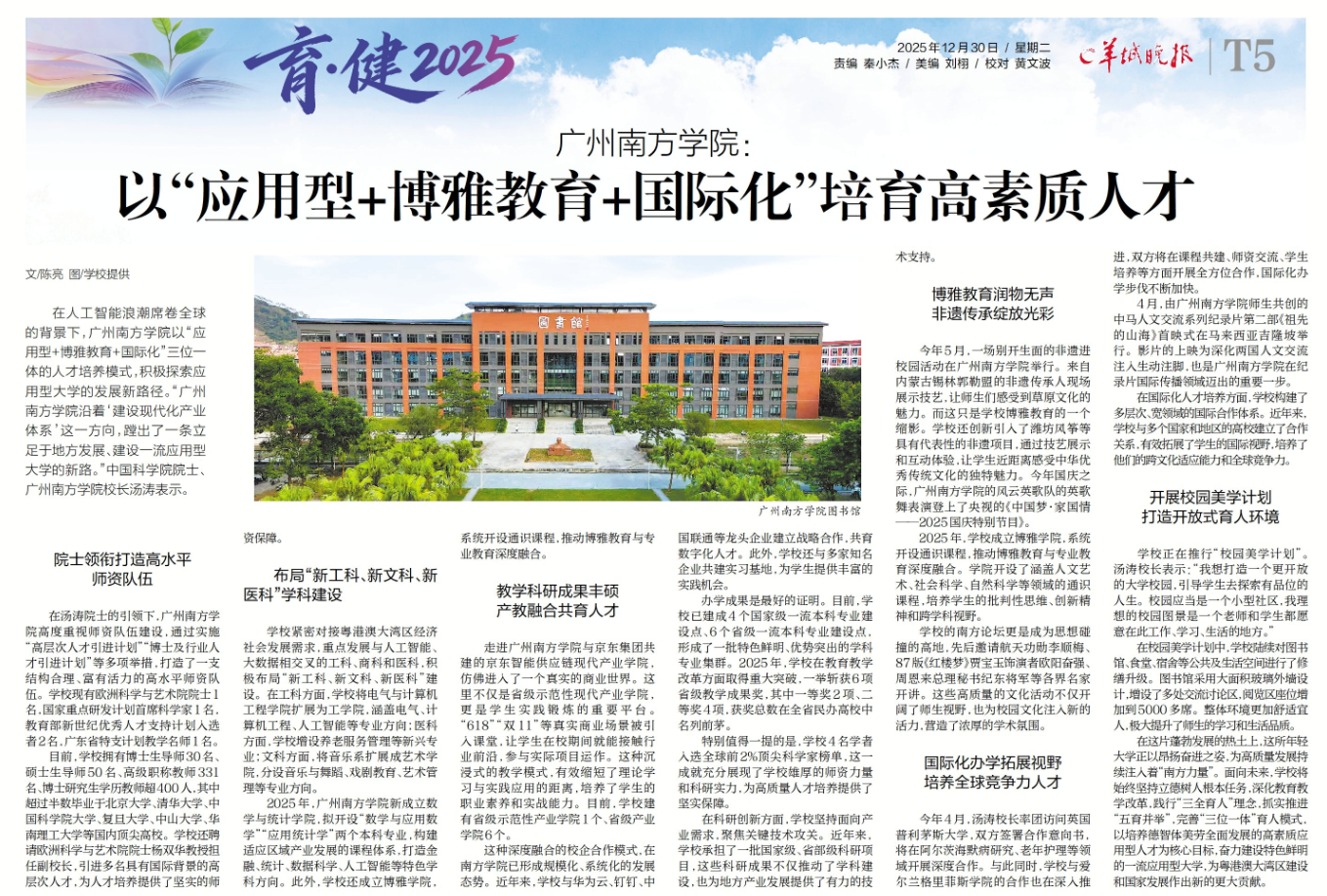 在人工智能浪潮席卷全球的背景下,广州南方学院以“应用型+博雅教育+国际化”三位一体的人才培养模式,积极探索应用型大学的发展新路径。“广州南方学院沿着‘建设现代化产业体系’这一方向,蹚出了一条立足于地方发展、建设一流应用型大学的新路。”中国科学院院士、广州南方学院校长汤涛表示。