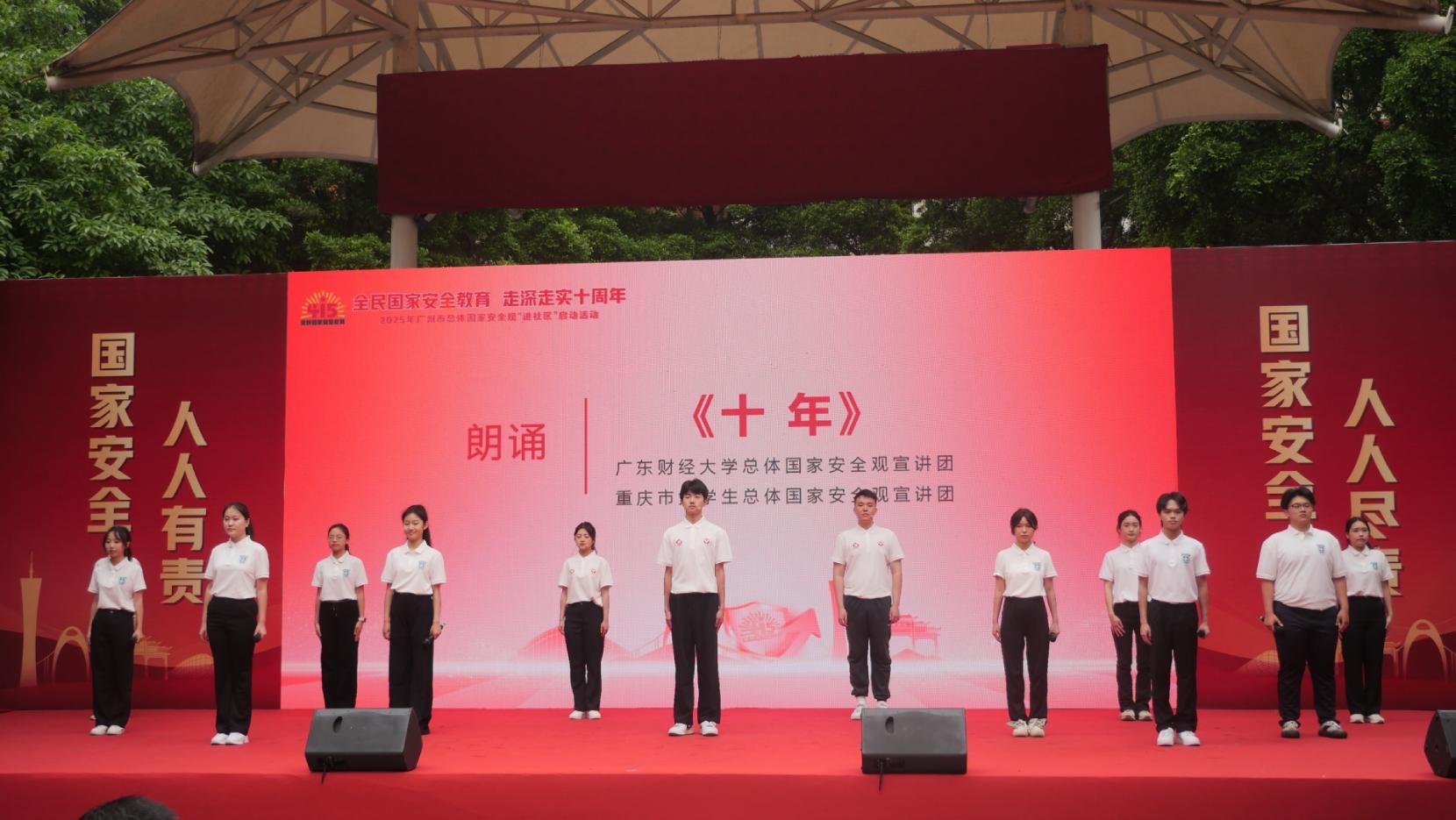 学校组建师生总体国家安全观宣讲团,走进粤港澳三地基层开展100余场宣讲活动,受邀参加“百人读纲要、一起学总观”大型接力朗诵活动,覆盖群众数万人次。与广州市委共建广州市首个高校“总体国家安全观教育培训基地”,开展干部培训、基层宣讲,累计培训各级各类干部群众5000余人次。