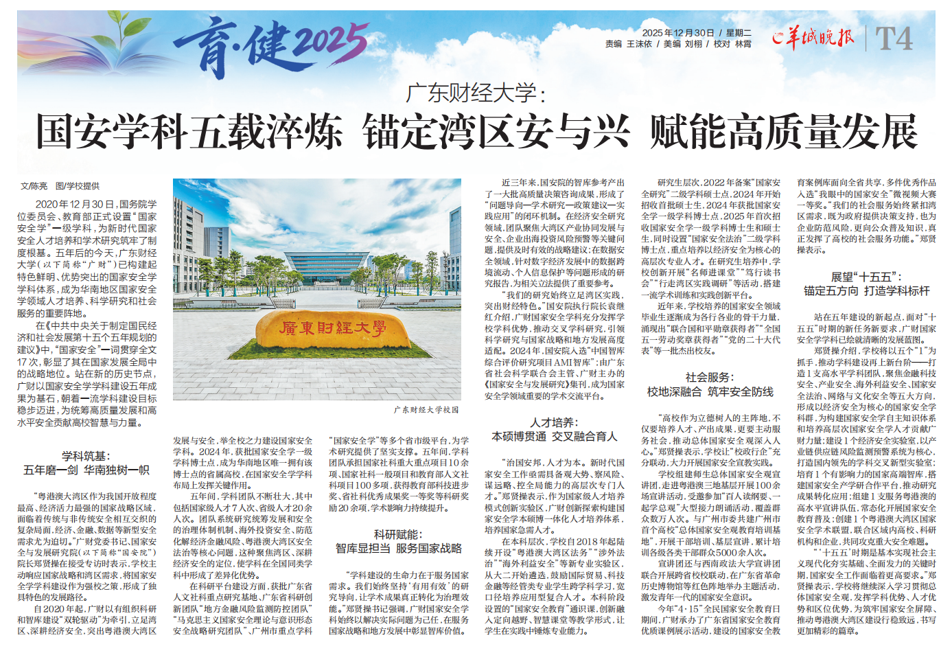 2020年12月30日,国务院学位委员会、教育部正式设置“国家安全学”一级学科,为新时代国家安全人才培养和学术研究筑牢了制度根基。五年后的今天,广东财经大学(以下简称“广财”)已构建起特色鲜明、优势突出的国家安全学学科体系,成为华南地区国家安全学领域人才培养、科学研究和社会服务的重要阵地。