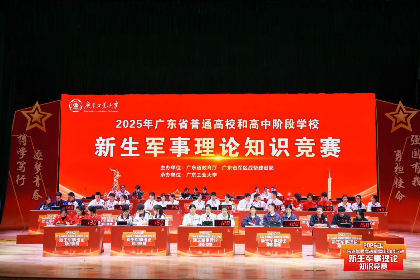 12月27-28日,2025年广东省普通高校和高中阶段学校新生军事理论知识竞赛在广东工业大学大学城校区举办。活动由省教育厅、省军区战备建设局联合主办,广东工业大学承办。经过层层选拔,来自全省150所普通高校和41所高中阶段学校的队伍脱颖而出,齐聚广州进行最后的较量。