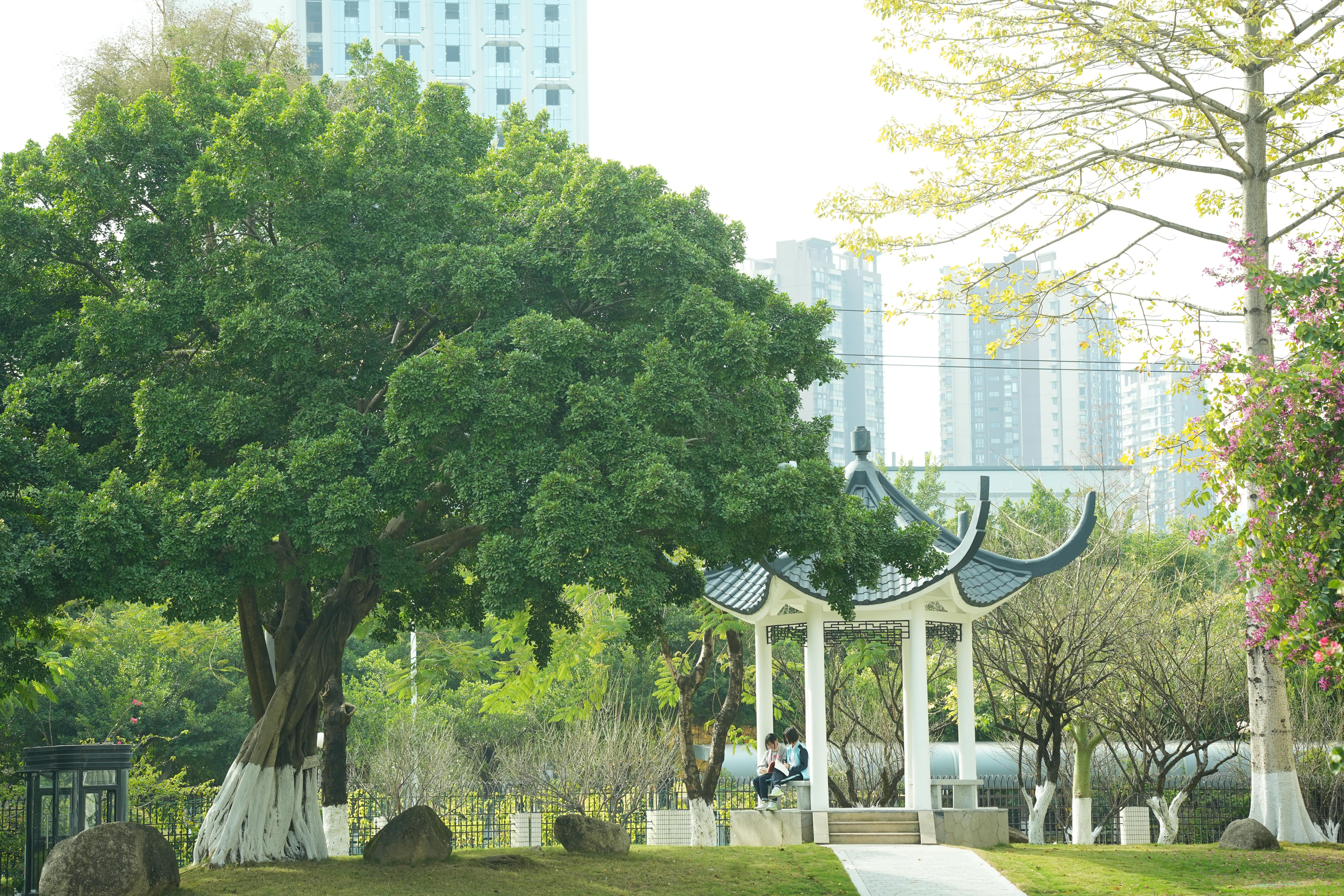 走进玉岩中学,15万多平方米的校园内,三栋现代化教学楼错落有致,明德、弘毅、致远的命名承载着学校对学子的期许。极具古典徽派风格的校园建筑与生机盎然的百年荔枝林相映成趣,四季花海盛开,让学生人均面积超60平方米的校园充满诗意。