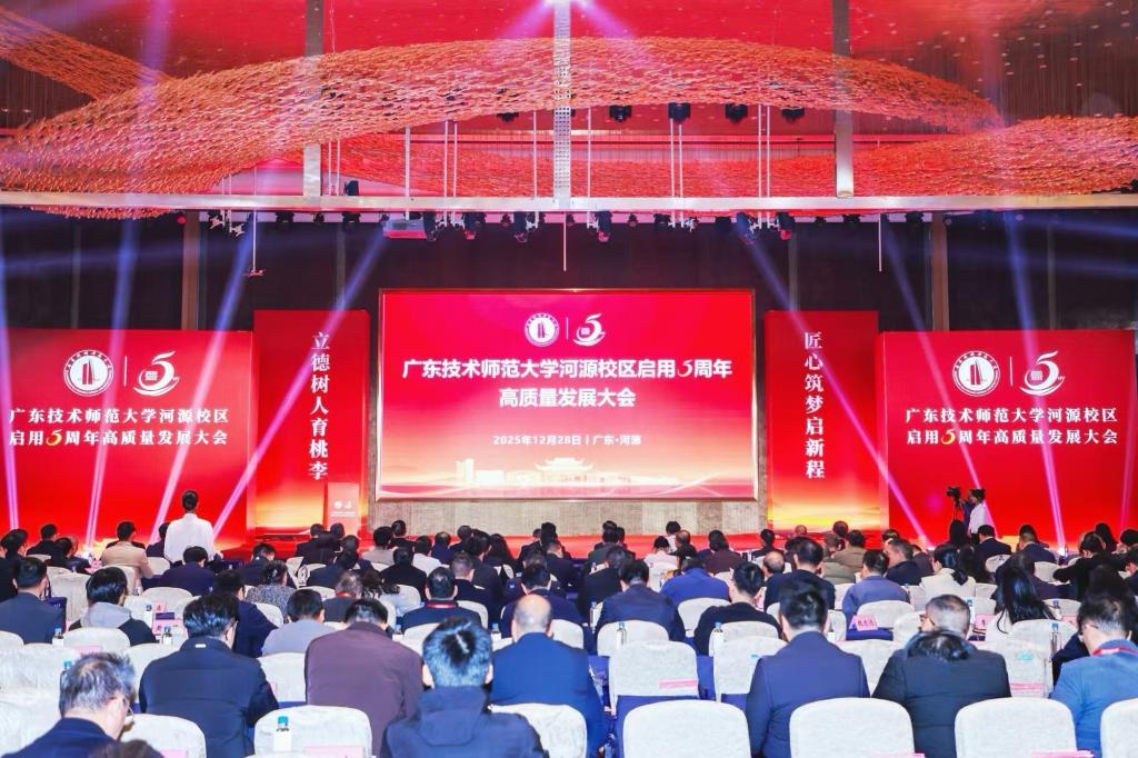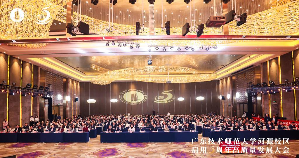 12月28日,广东技术师范大学河源校区启用5周年高质量发展大会在河源举行。大会汇聚了广东省、河源市各级领导,专家学者、兄弟院校代表,学校领导班子和各二级单位党政负责人,学校老领导、离退休教职工、师生和校友代表、企业行业商会代表等共计500余人,大家齐聚一堂,共忆耕耘岁月,共话协同新篇,共绘发展蓝图。